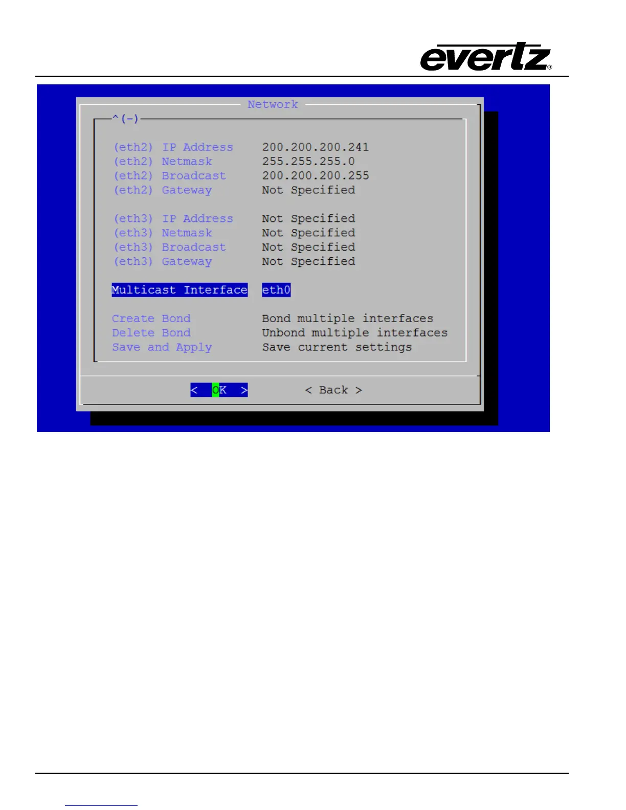 is required, initialize Ethernet 3 and bond Ethernet 2 and 3 using the Create Bond menu item