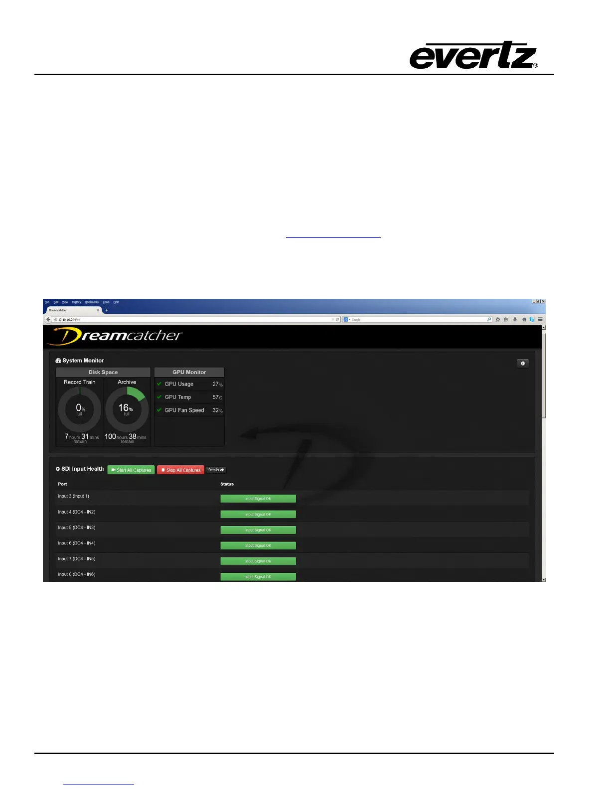 3.3.2. DreamCatcher Server Settings and Diagnostics Widget