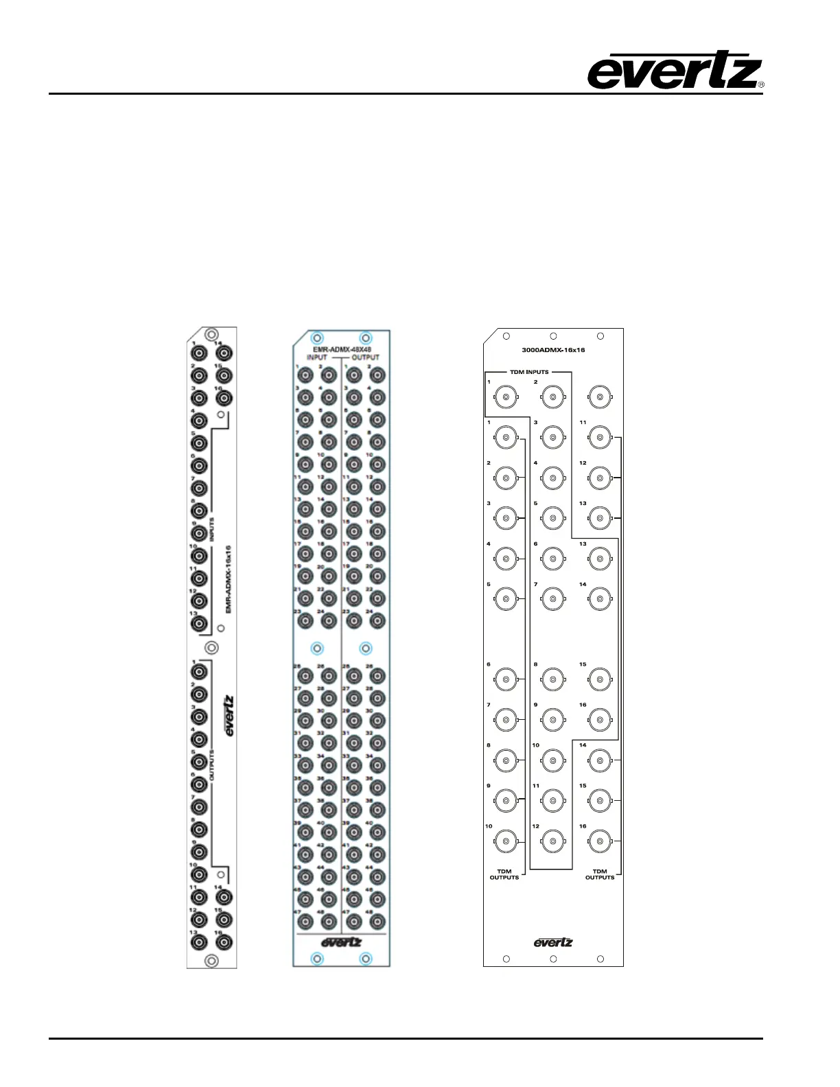 2-21: EMR-ADMX-16X16/A (left), EMR-ADMX-48X48 (center) and 3000ADMX-16X16 (right)