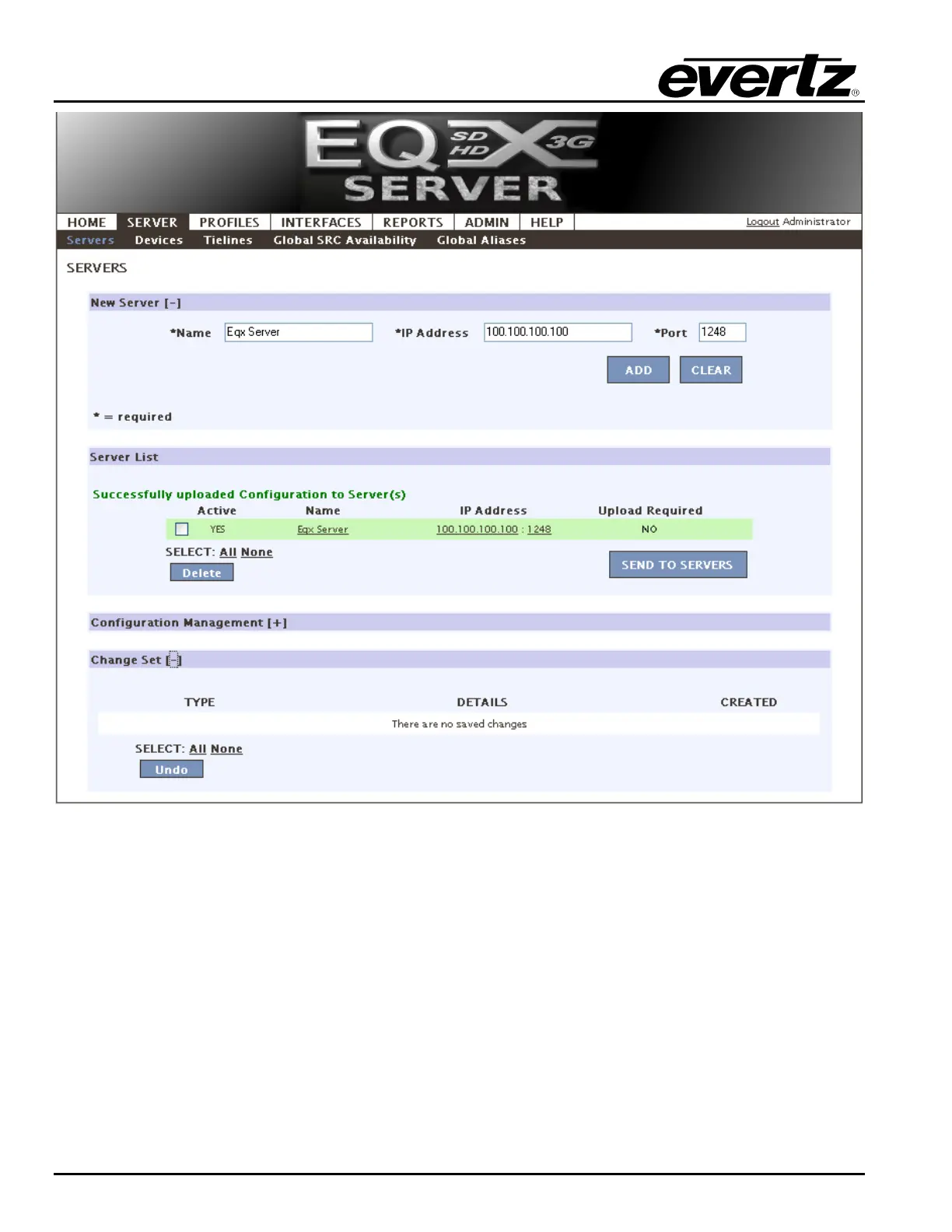 server, select the Send to Servers button in the Server List section.