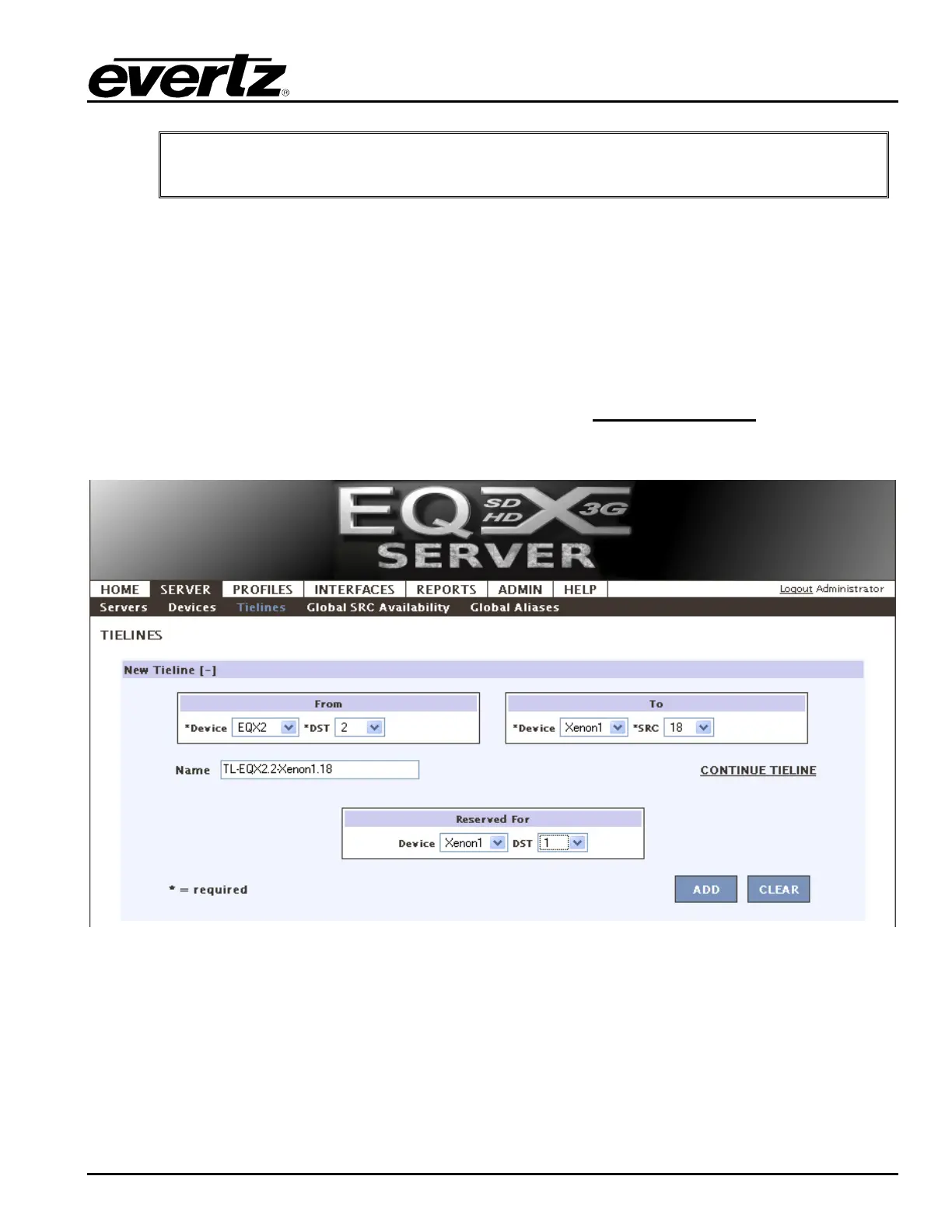 1. On the SERVER tab click on Tielines. This screen enables the user to choose the upstream (or