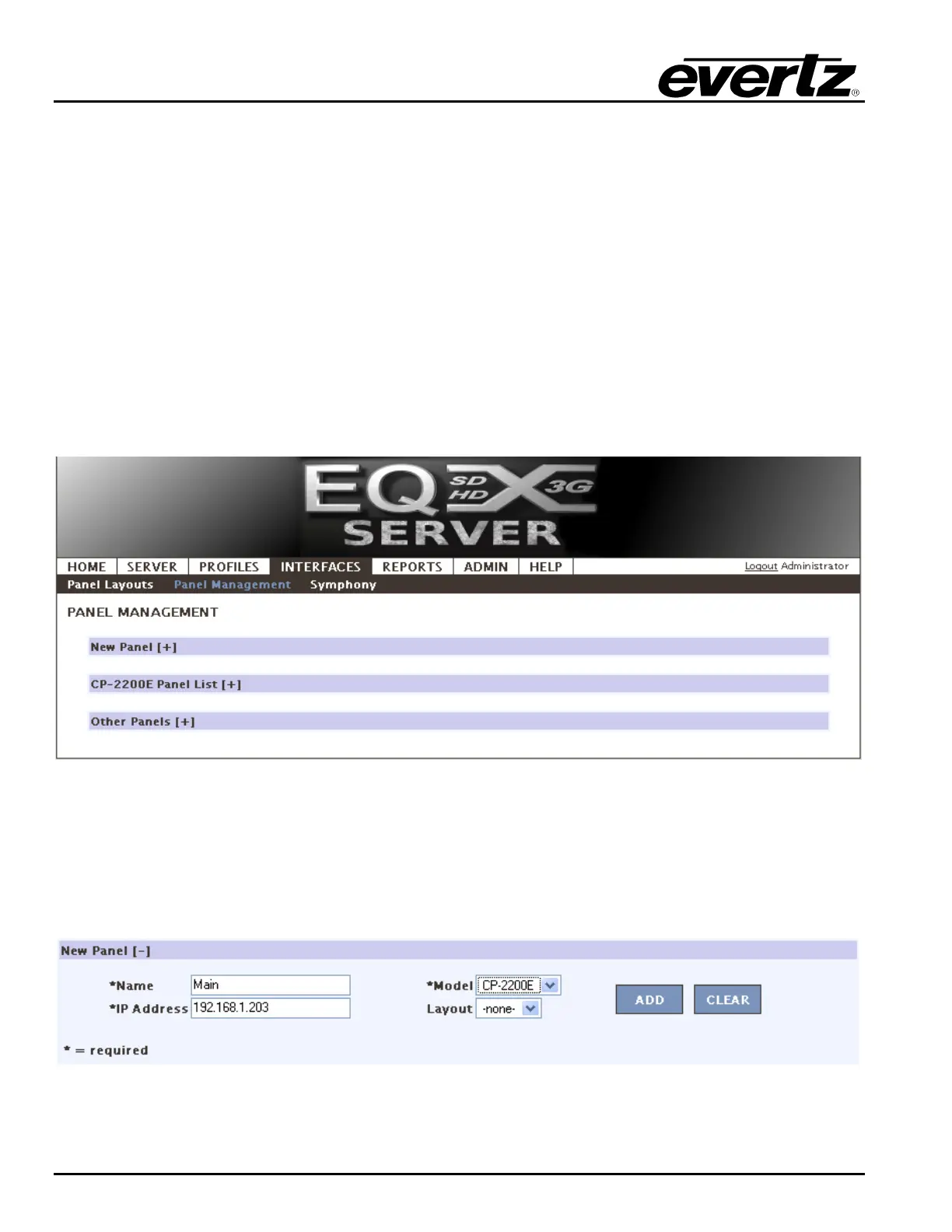 3. The Panel Management section enables the user to define and configure Control Panels.
