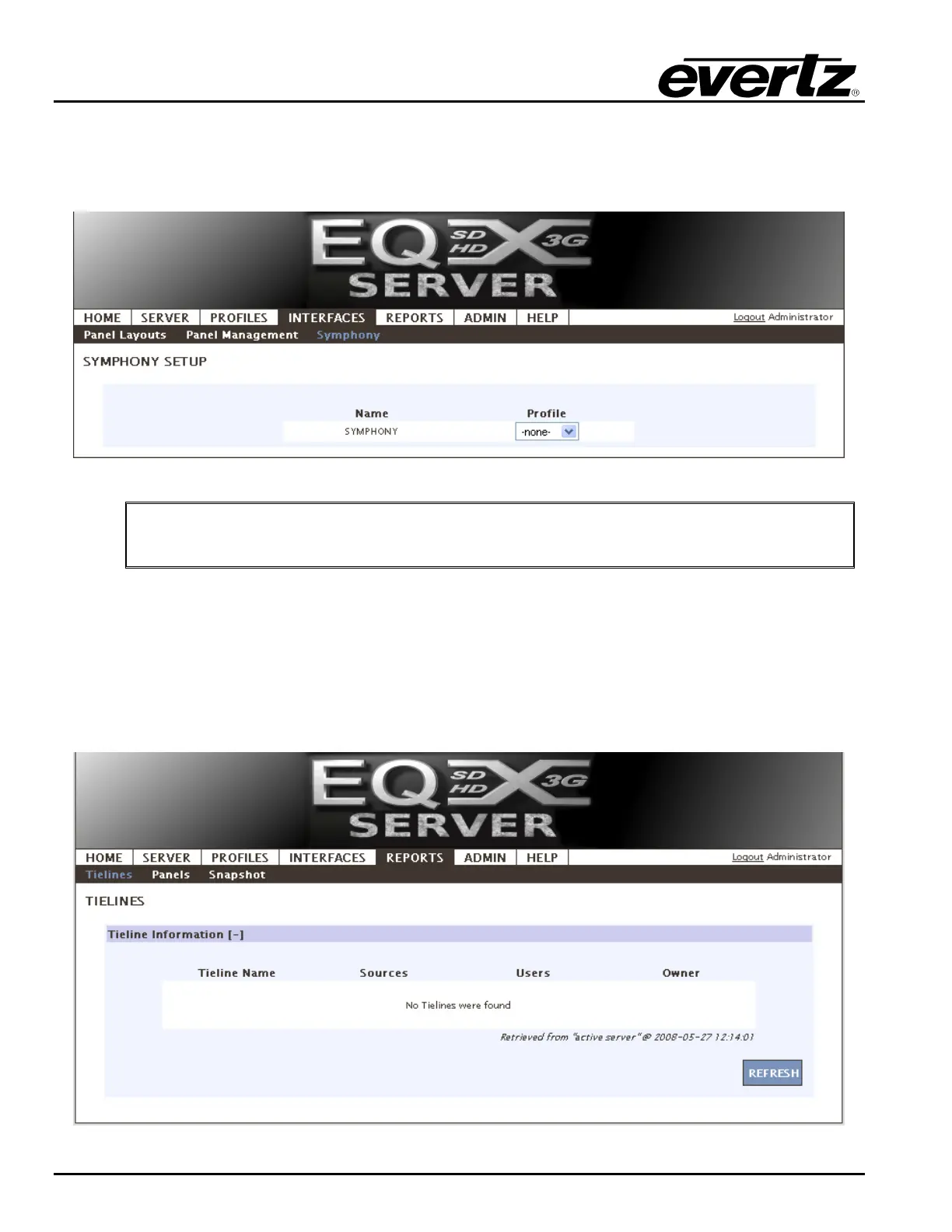 1. On the REPORTS tab click on the Reports menu. Current Tieline information will be displayed.