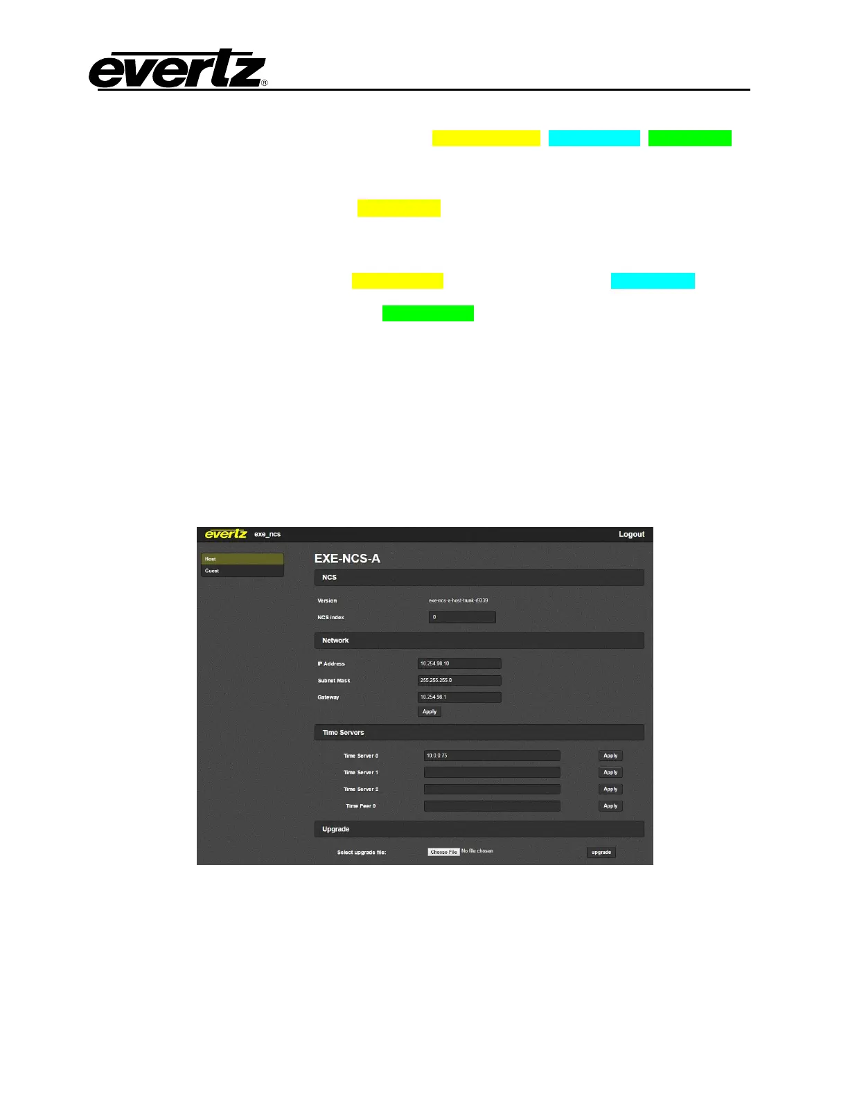 1. Login to the EXE-NCS host webpage with username root, password evertz. This will bring up the Host