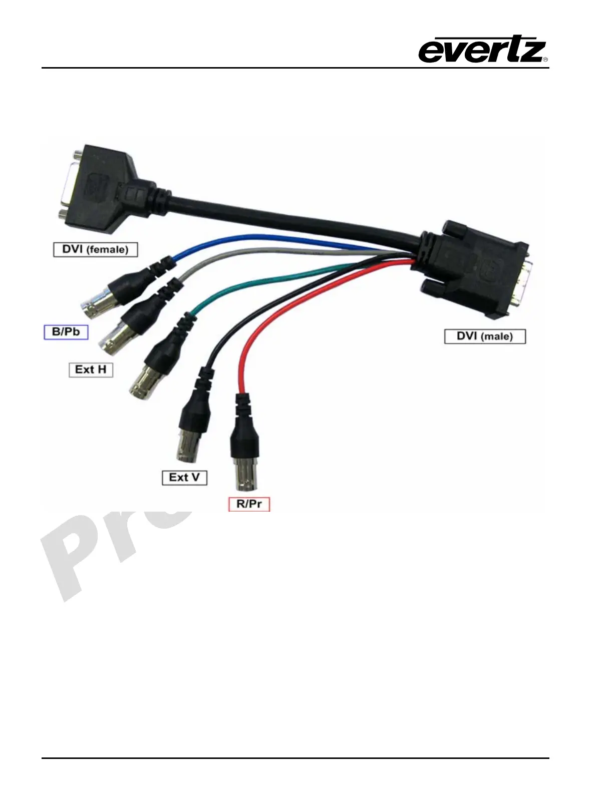 DVIBNC5 (optional accessory). The second cable is Evertz breakout cable #WPDVI-DVI2 (optional