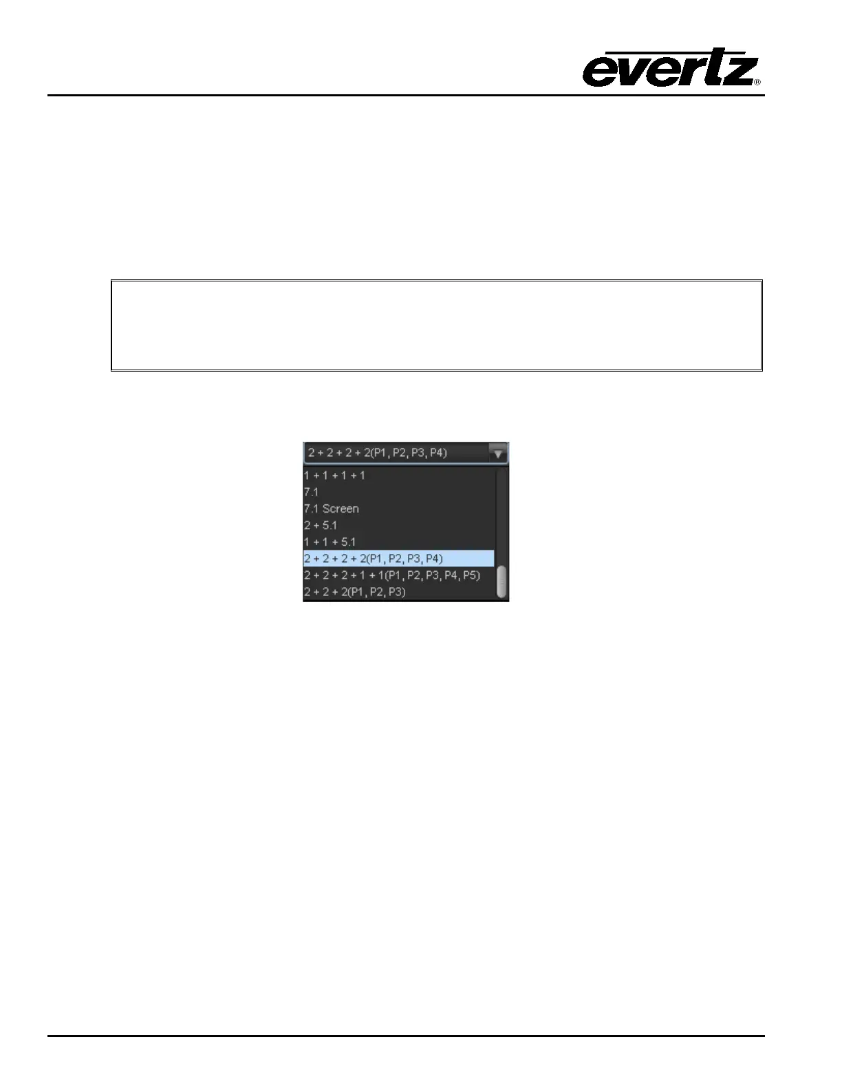 and audio program 4 mapped to AES 3. Program Configuration Source 2 + 2 + 2 + 2 (p1, p2,