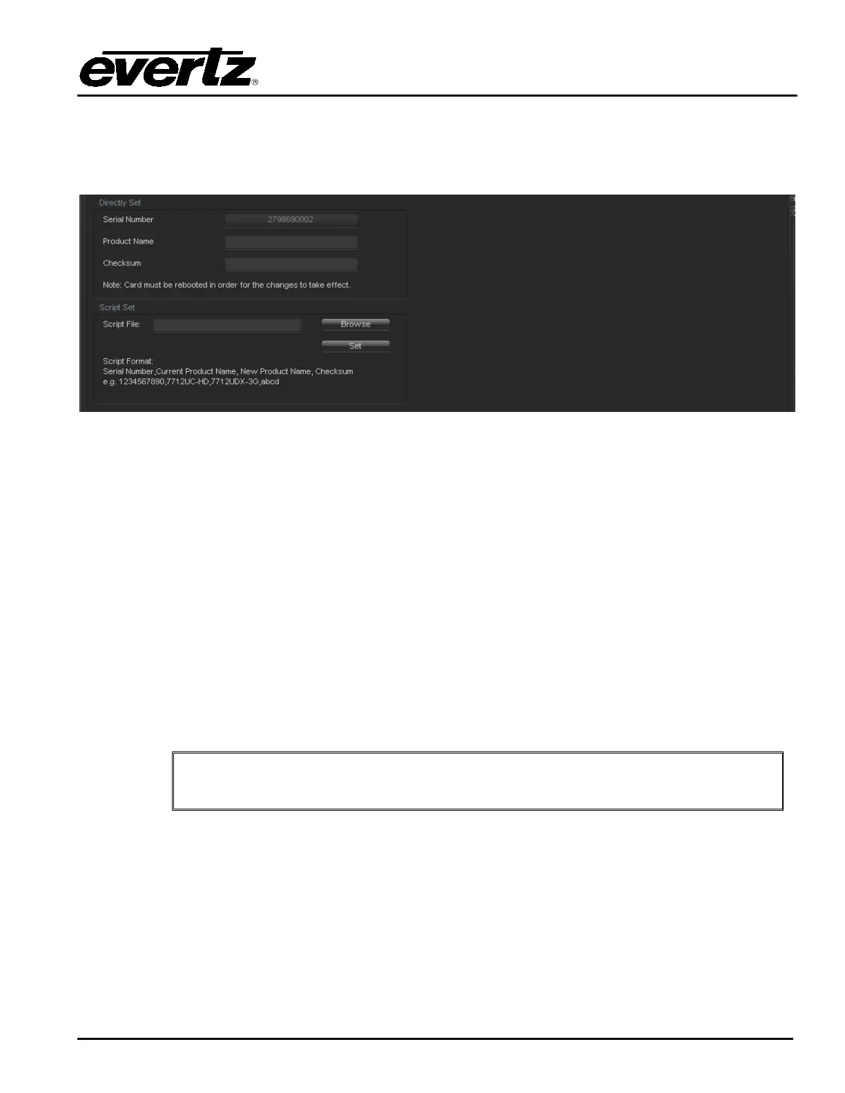 The check sum location will contain the verification code that the Evertz sales department will provide