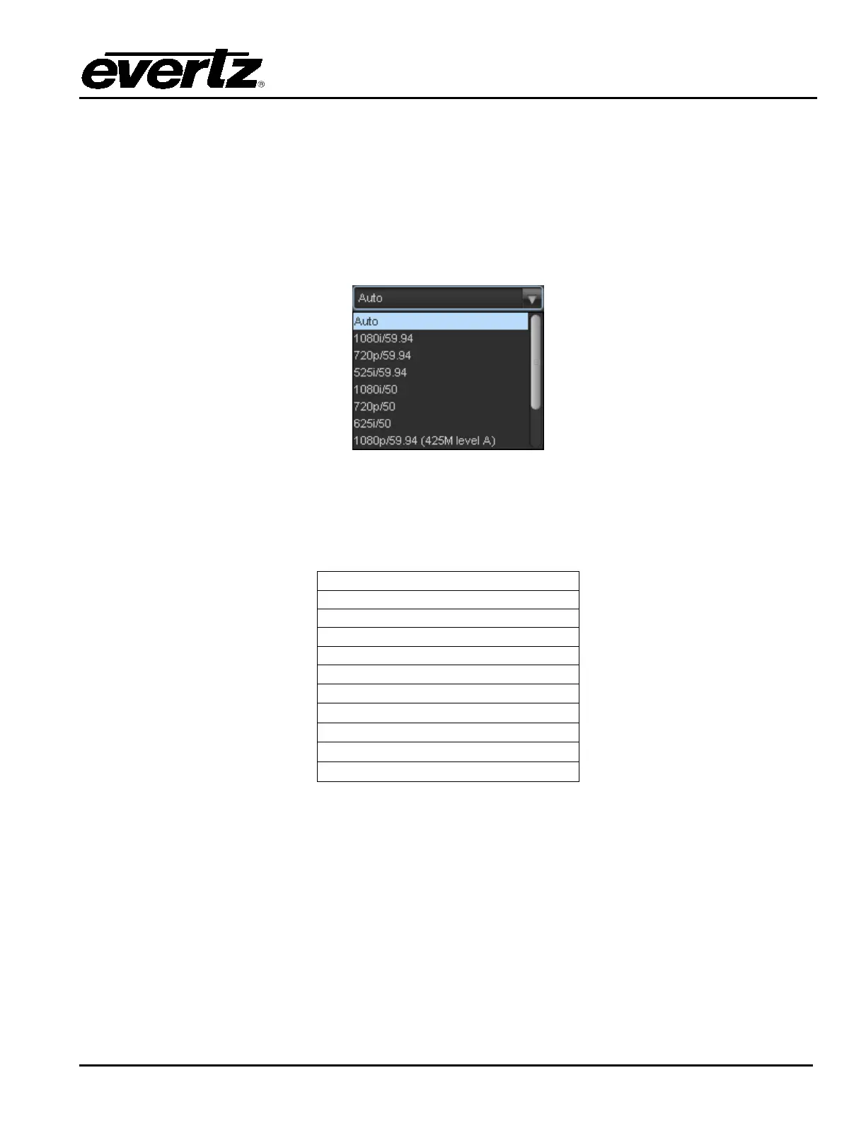 module is not capable of converting between 59.94/60 Hz and 50 Hz related frame rates. The drop down