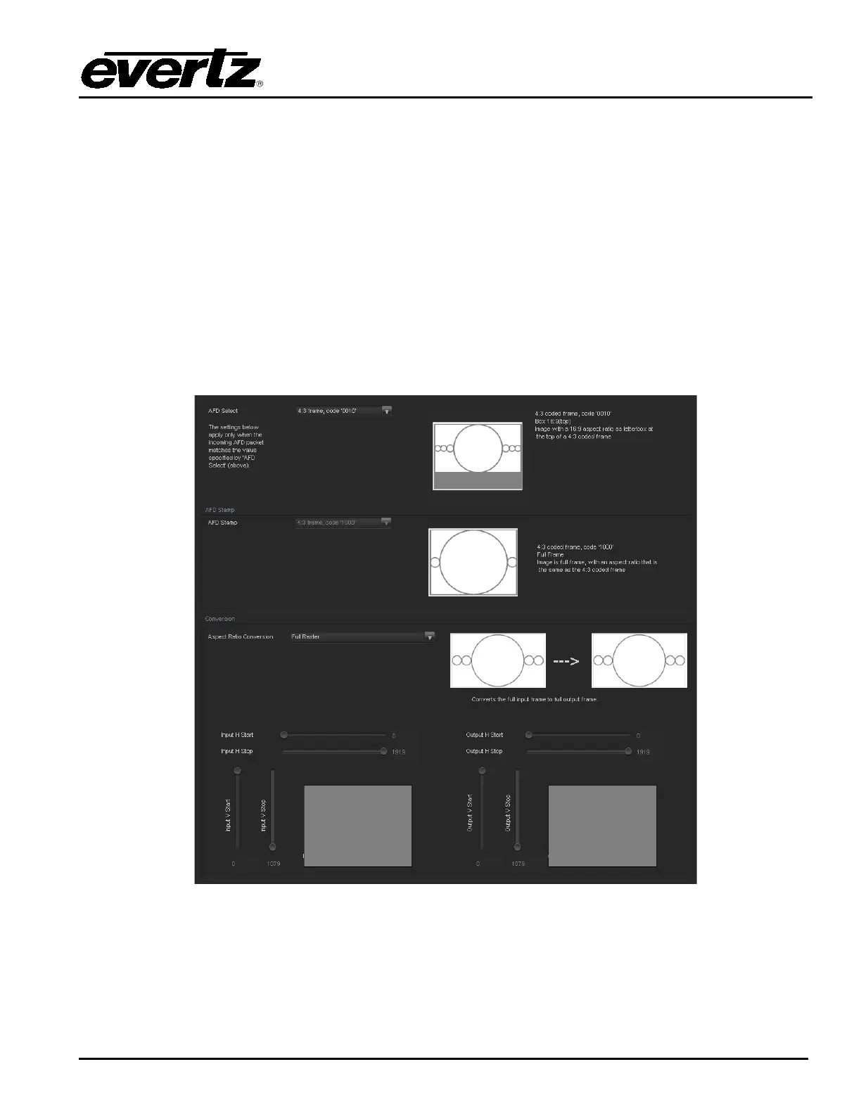 Aspect Ratio Conversions in response to incoming AFD codes. For each incoming AFD code, the user