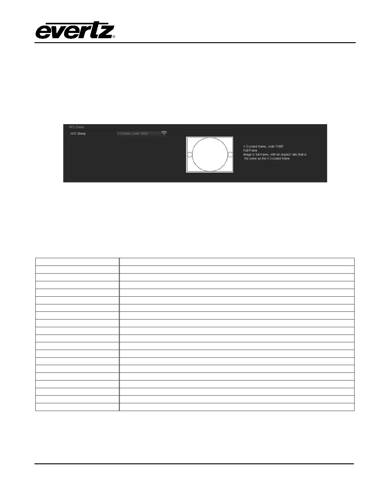 menu to select the appropriate out-bound AFD code. There are 20 SMPTE2016-1 AFD codes to choose