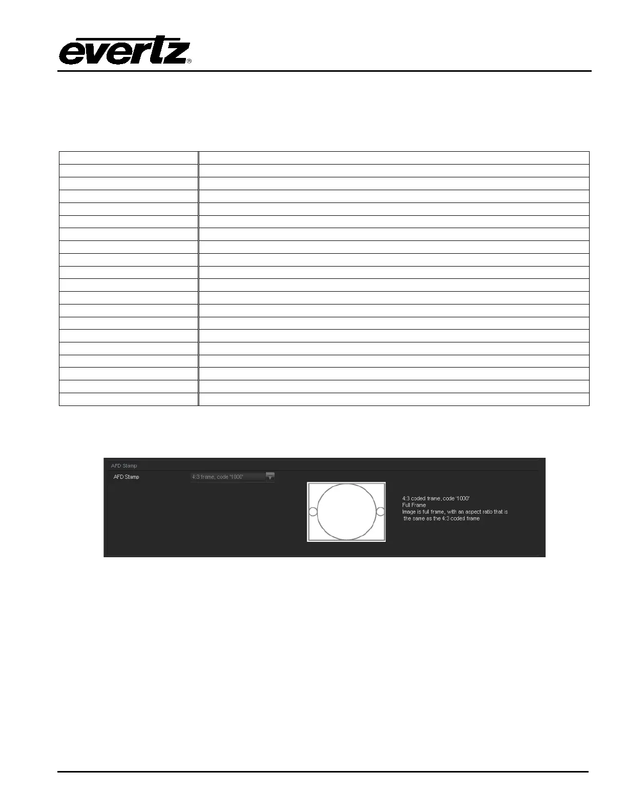 AFD code 4:3 frame, code ‘1000’ will be inserted into the outgoing video.