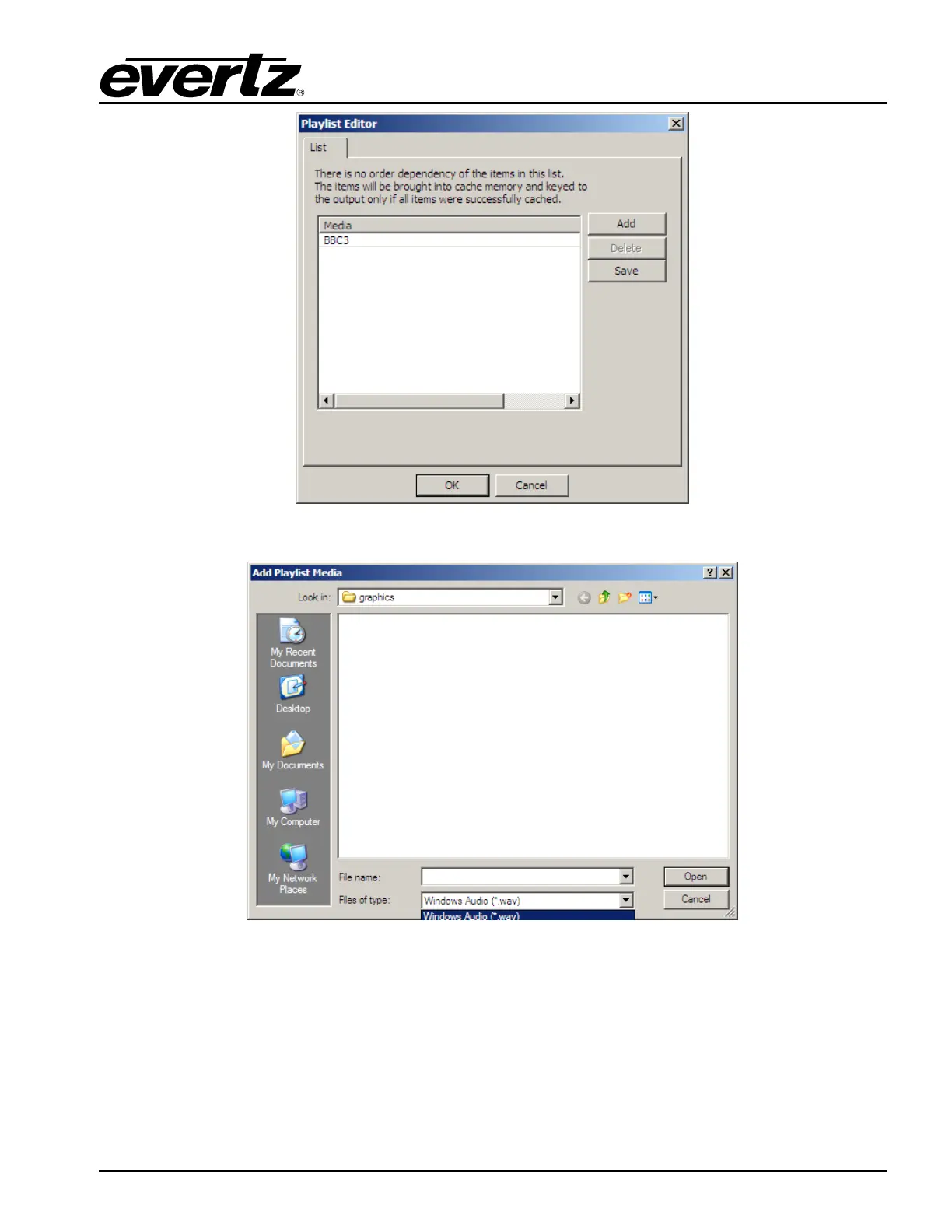 evertz Overture - Figure 2-19: Playlist Editor; Figure 2-20: Playlist Media