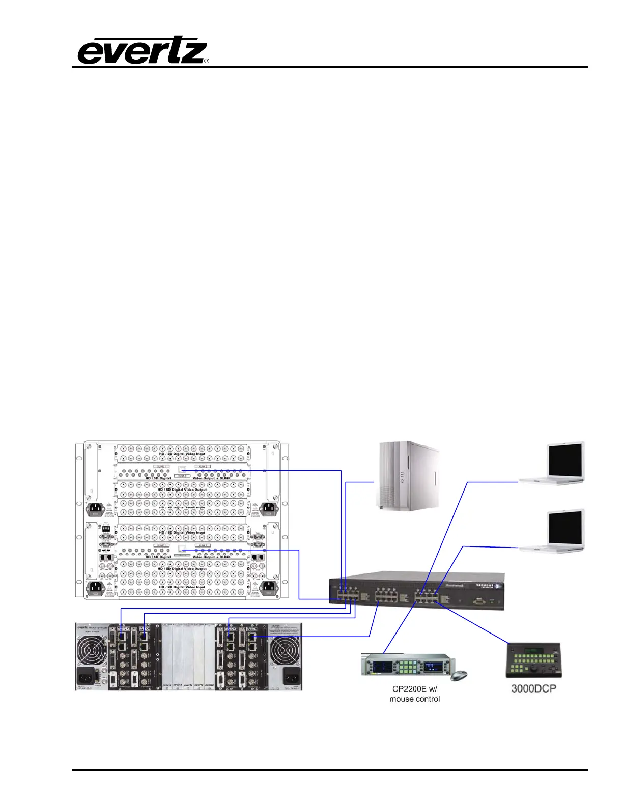Figure 4-1 below, details the Ethernet connection points in the system. Evertz recommends that a