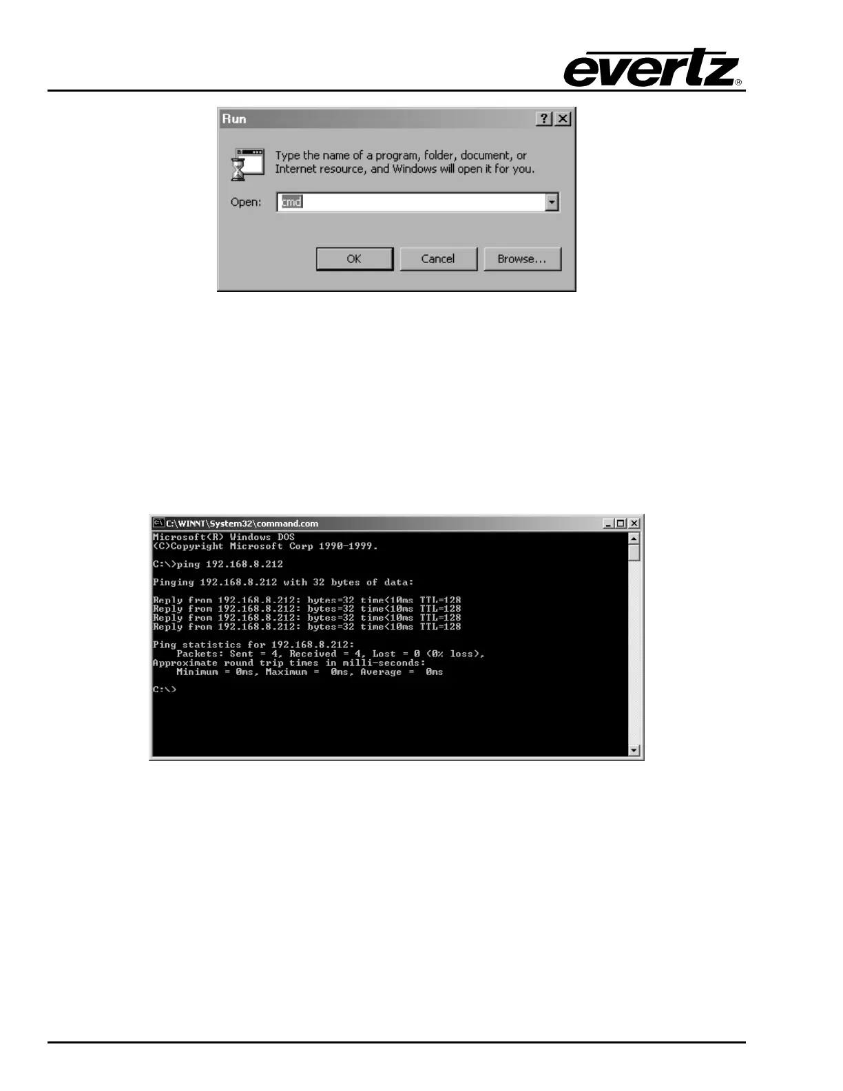If a proper network connection has been established, a “reply” is displayed on the DOS window. If