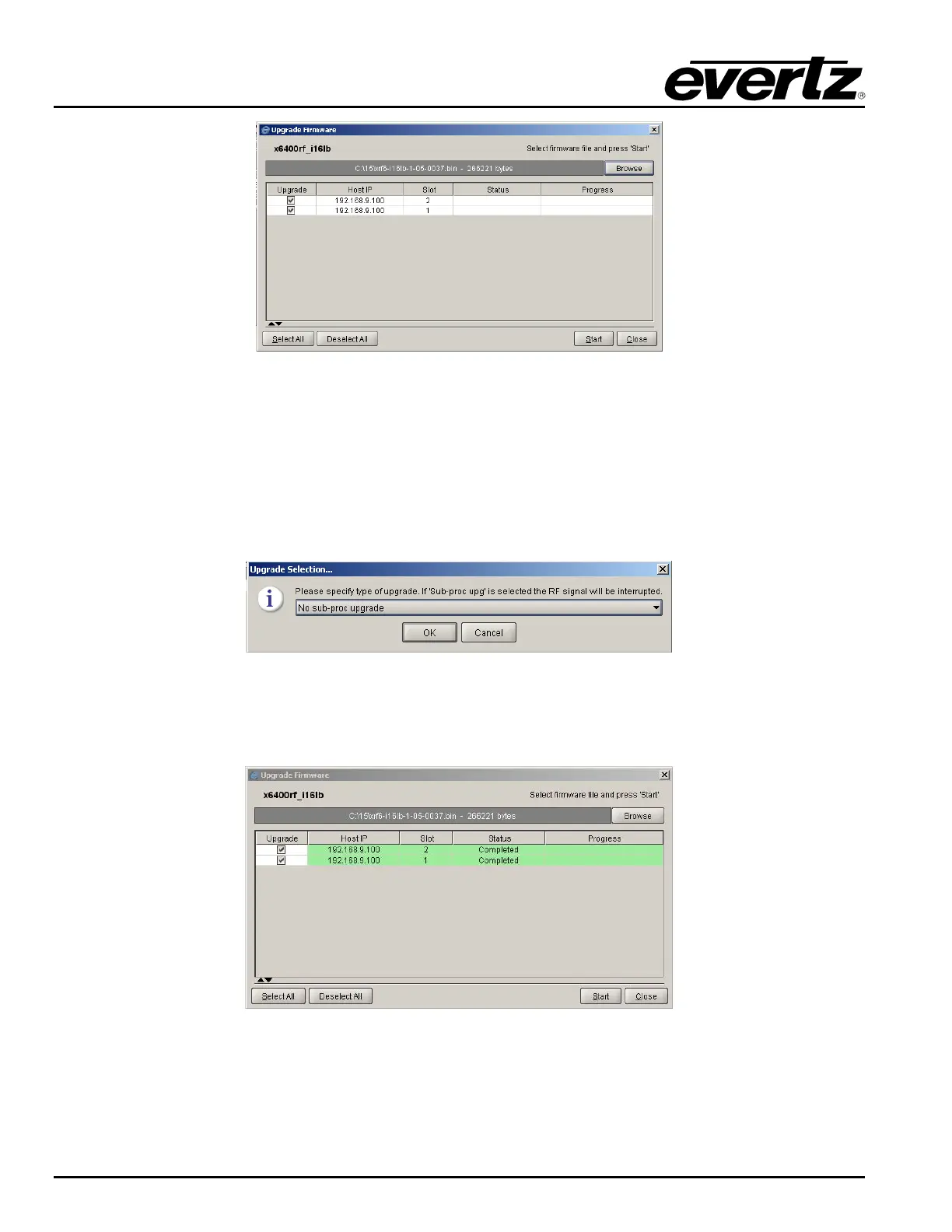 9. The upgrade process is finished when Completed is listed under Status for each card selected for