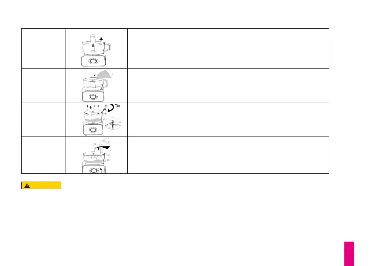 2)Do not process hard food materials, such as coee beans, ice cubes, etc. to avoid cracking Bowl and deformation blunt of Dough Hook.