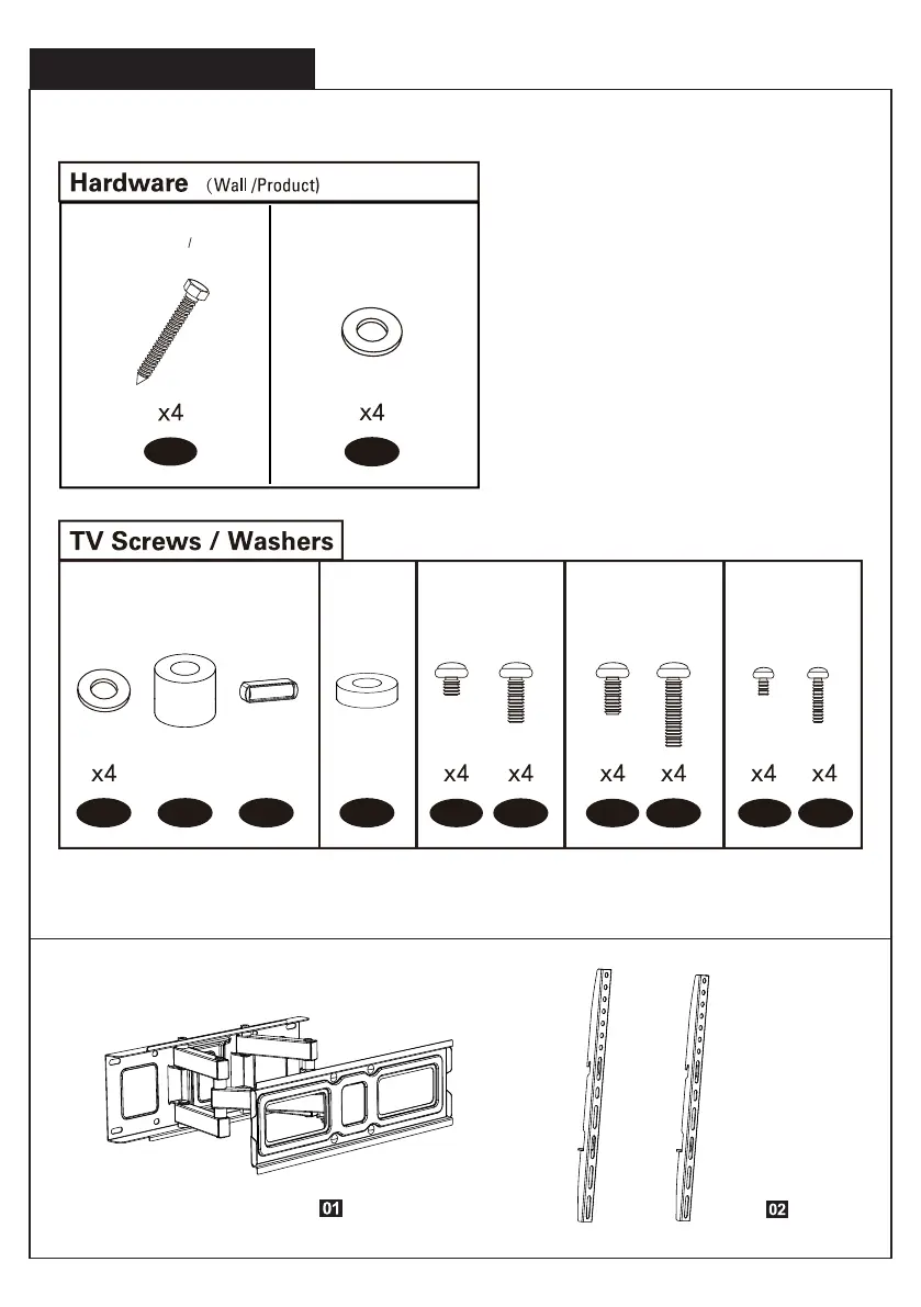 EVERVIEW EV2001SD - Supplied Hardware; Wall Mounting Hardware; TV Mounting Hardware