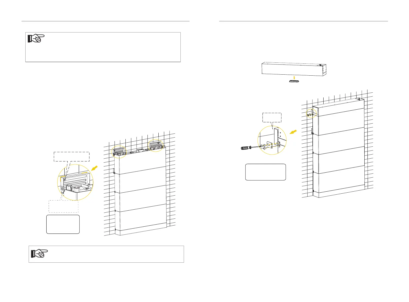 (2) Place such Wall Bracket to the wall, align its holes to the holes on the Battery