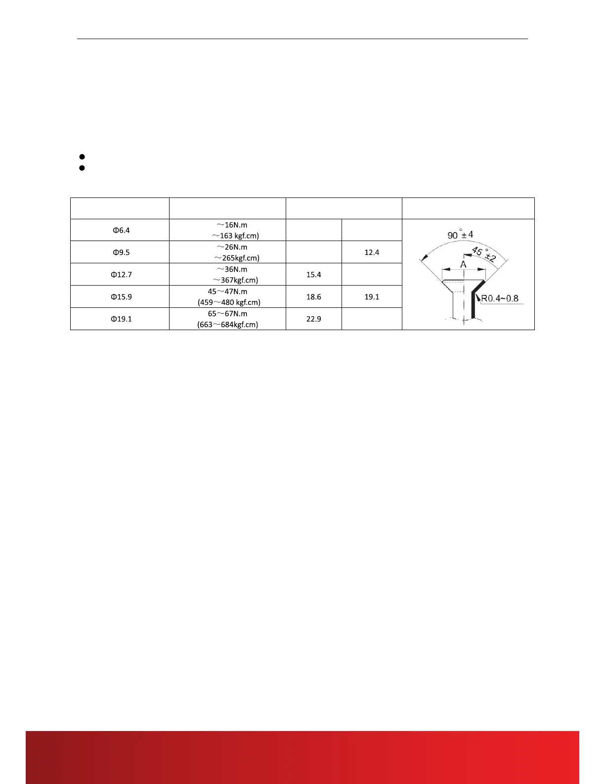 Daub the surfaces of the flare pipe and the joint nuts with frozen oil, and wrench it for 3~4 rounds