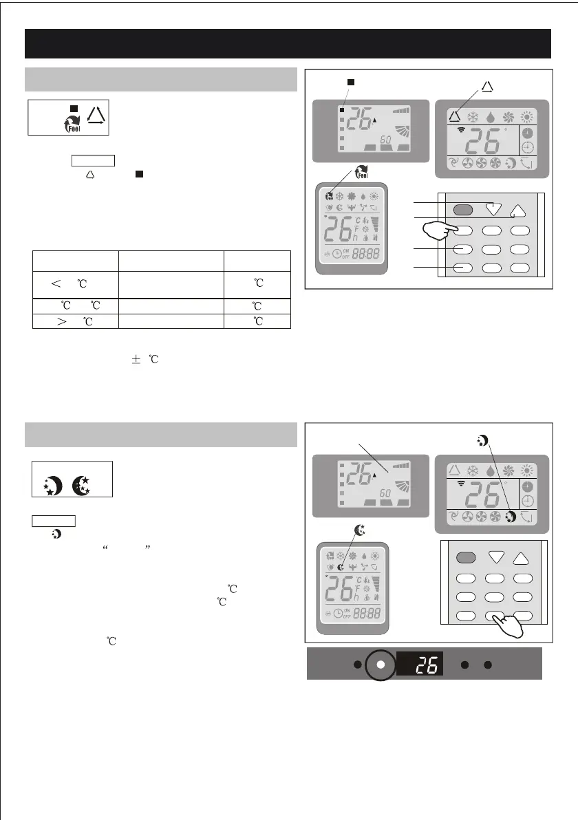 In FEEL mode the fan speed and the temperature