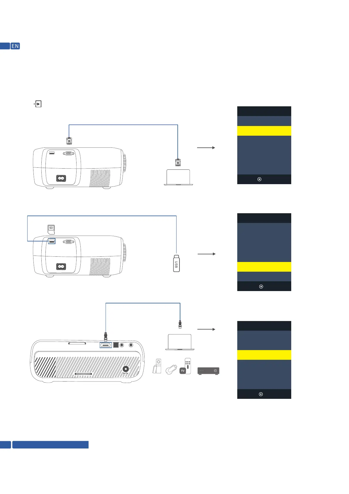 Press button on the projector or remote to enter the interface of INPUT SOURCE.