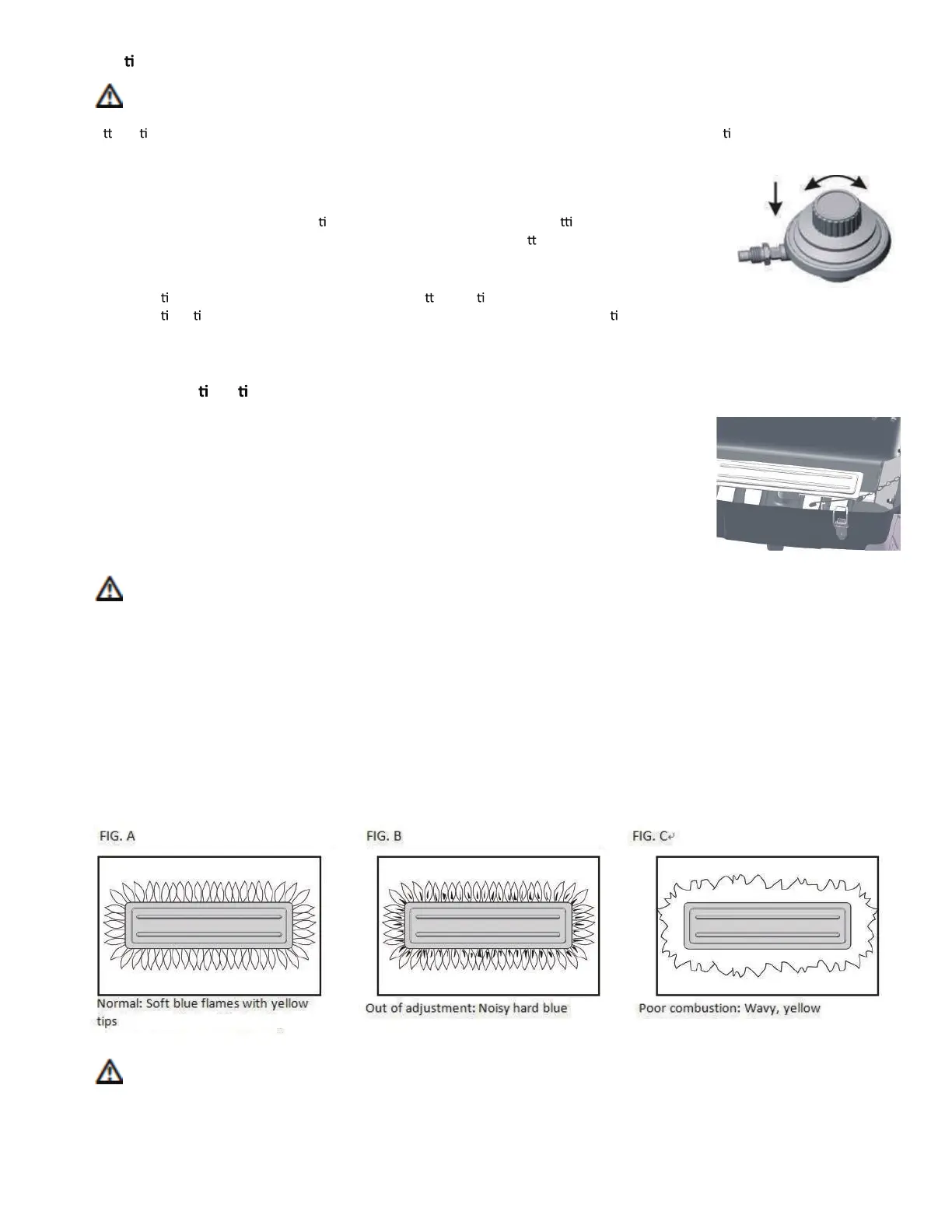 Confirm that the burner is properly lit and that the flame paern is normal (see fig. A,B and C below for the proper flame