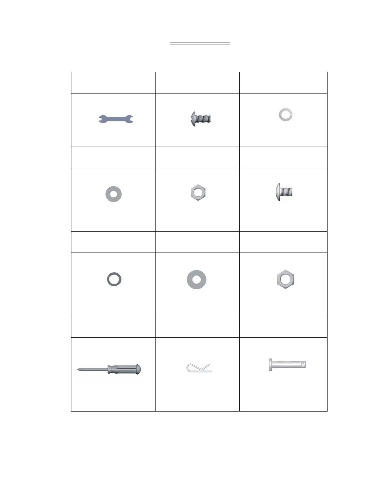 Hardware listed above is not scaled to exact size. (A screwdriver is required for assembly and is included