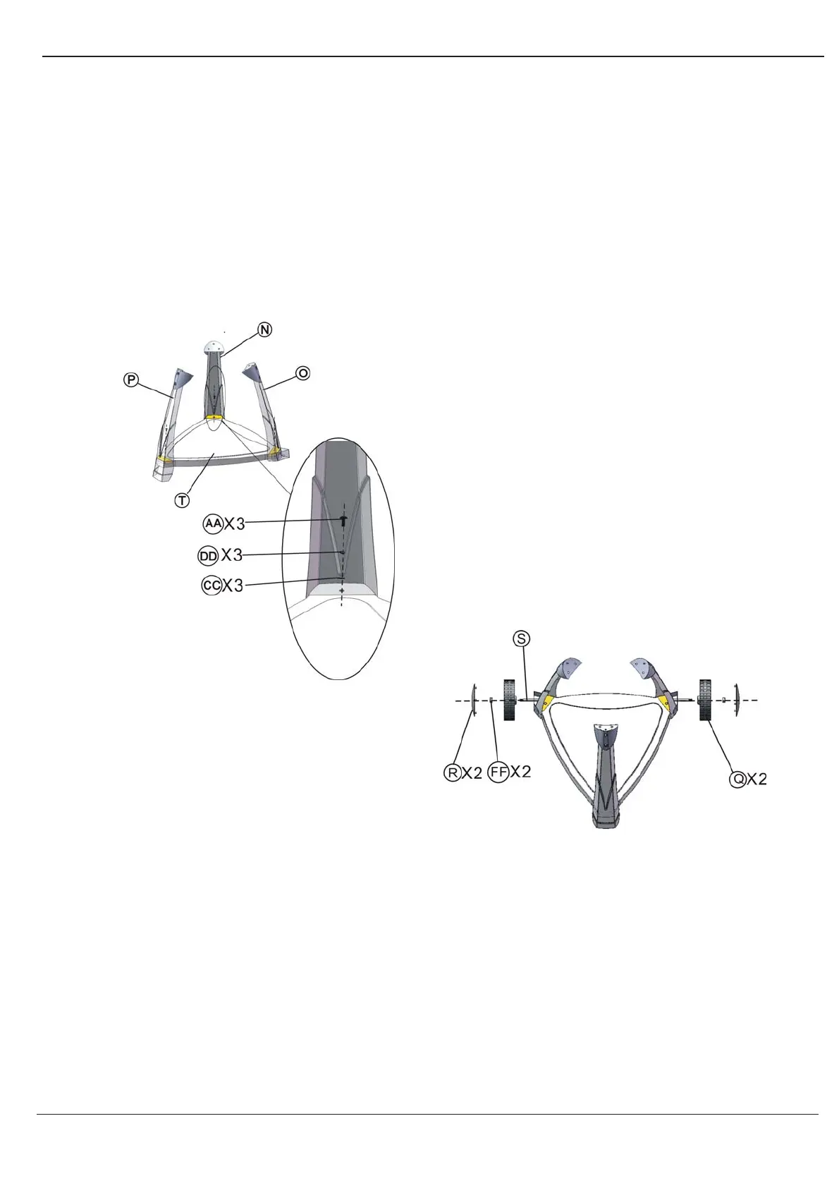 2. Insert caster (Q), M8 nut (FF) and caster