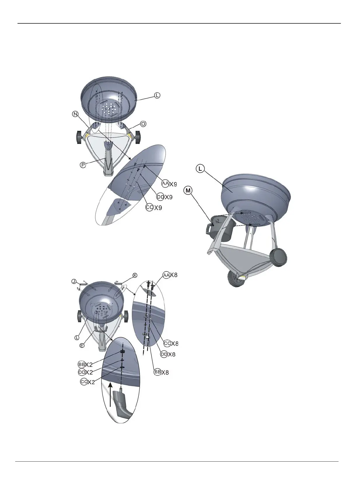 1. Hook the ash pail (M) to the bottom
