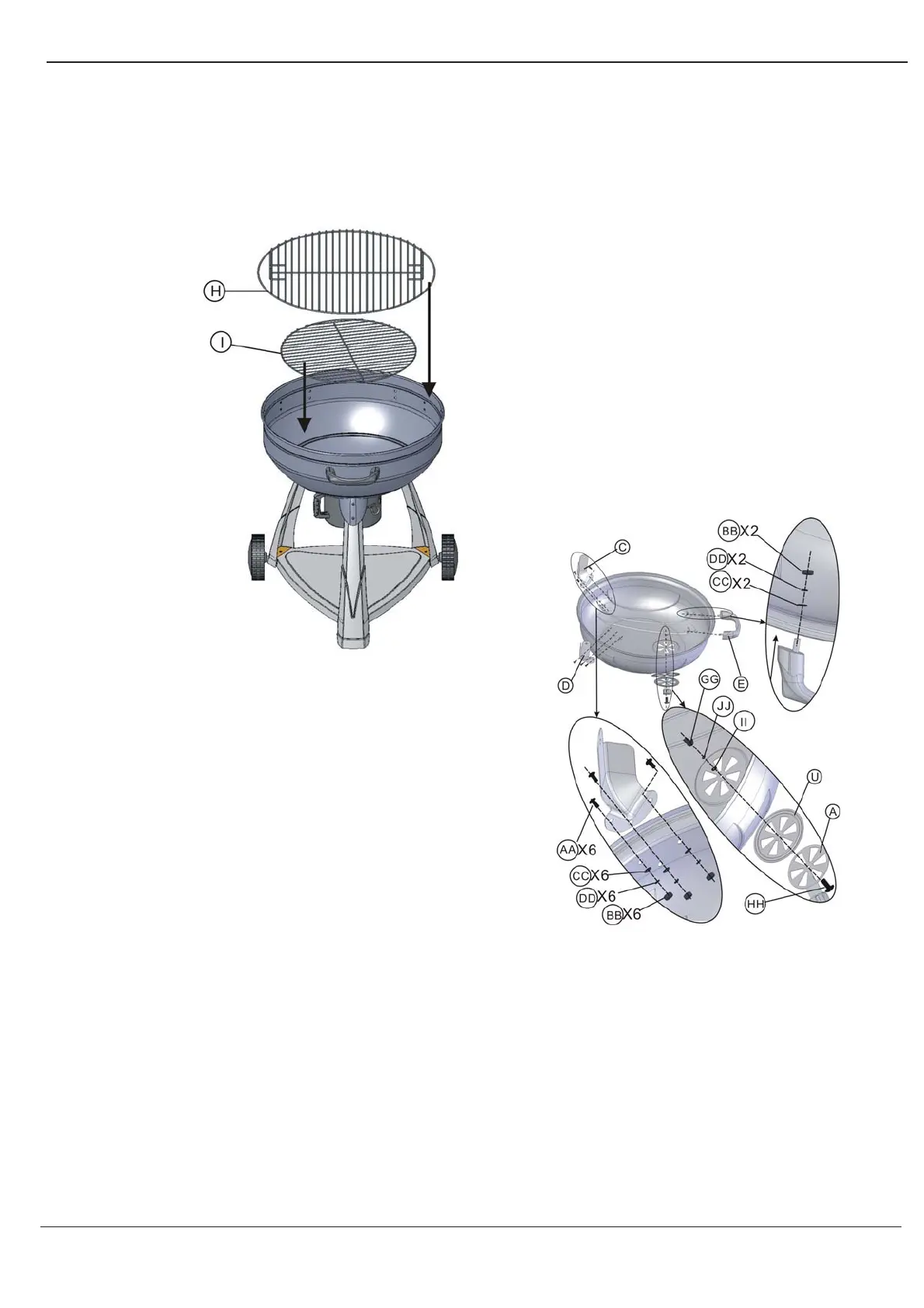 2. Place cooking grid (H) onto charcoal