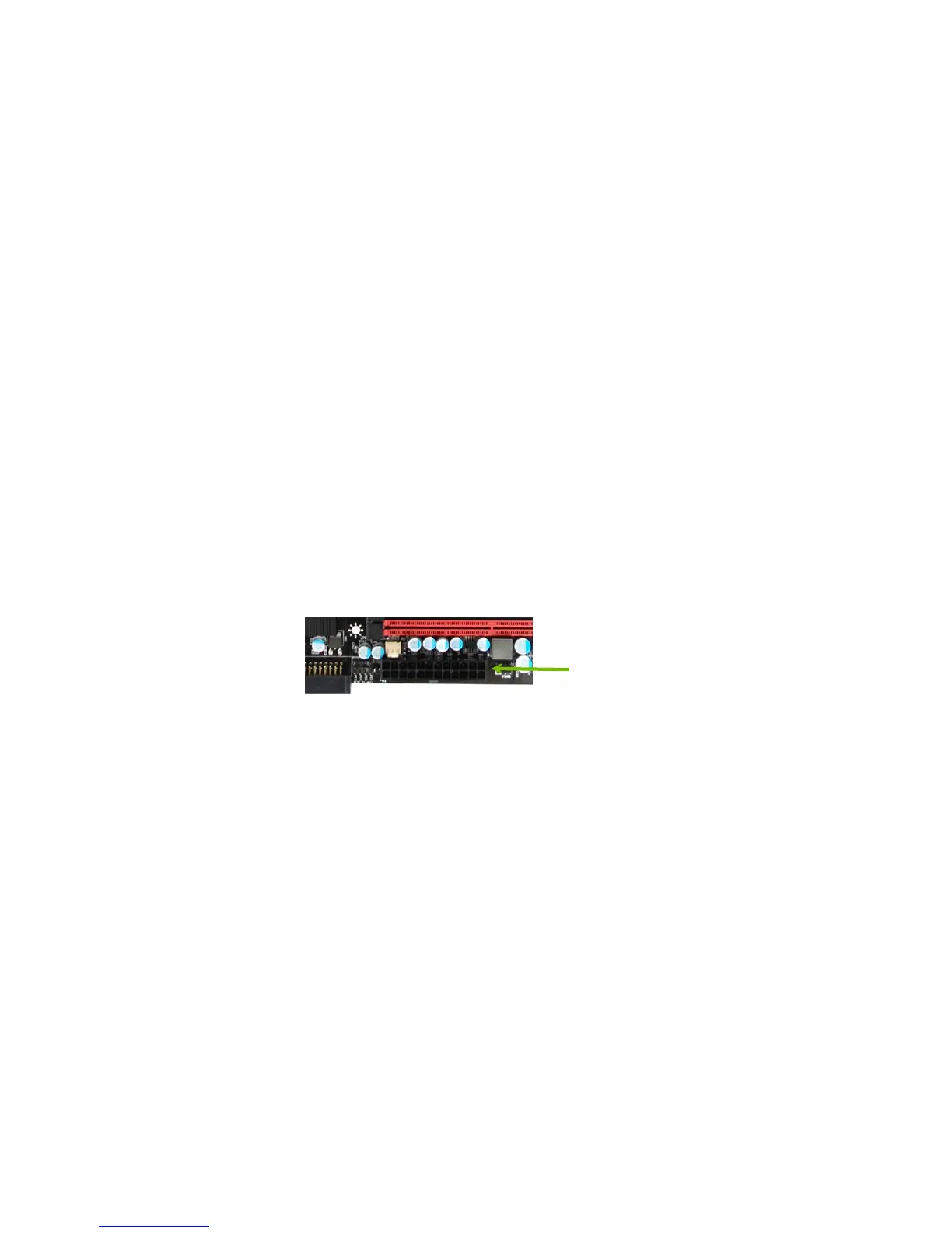 next to the DIMM slots. Make sure that the power supply cable and pins are