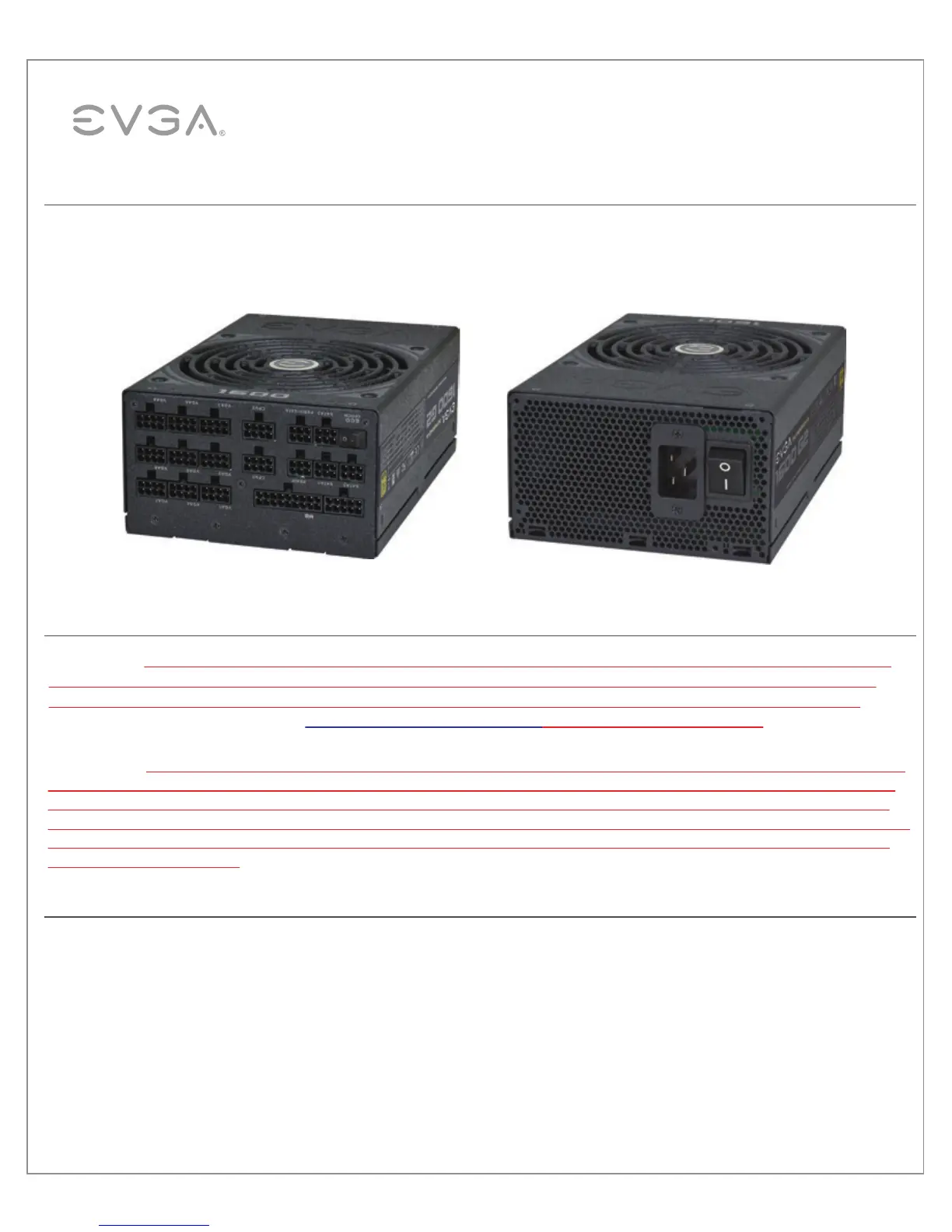 your specific model of Power Supply made BY EVGA. EVGA will NOT be responsible for damages caused to your power