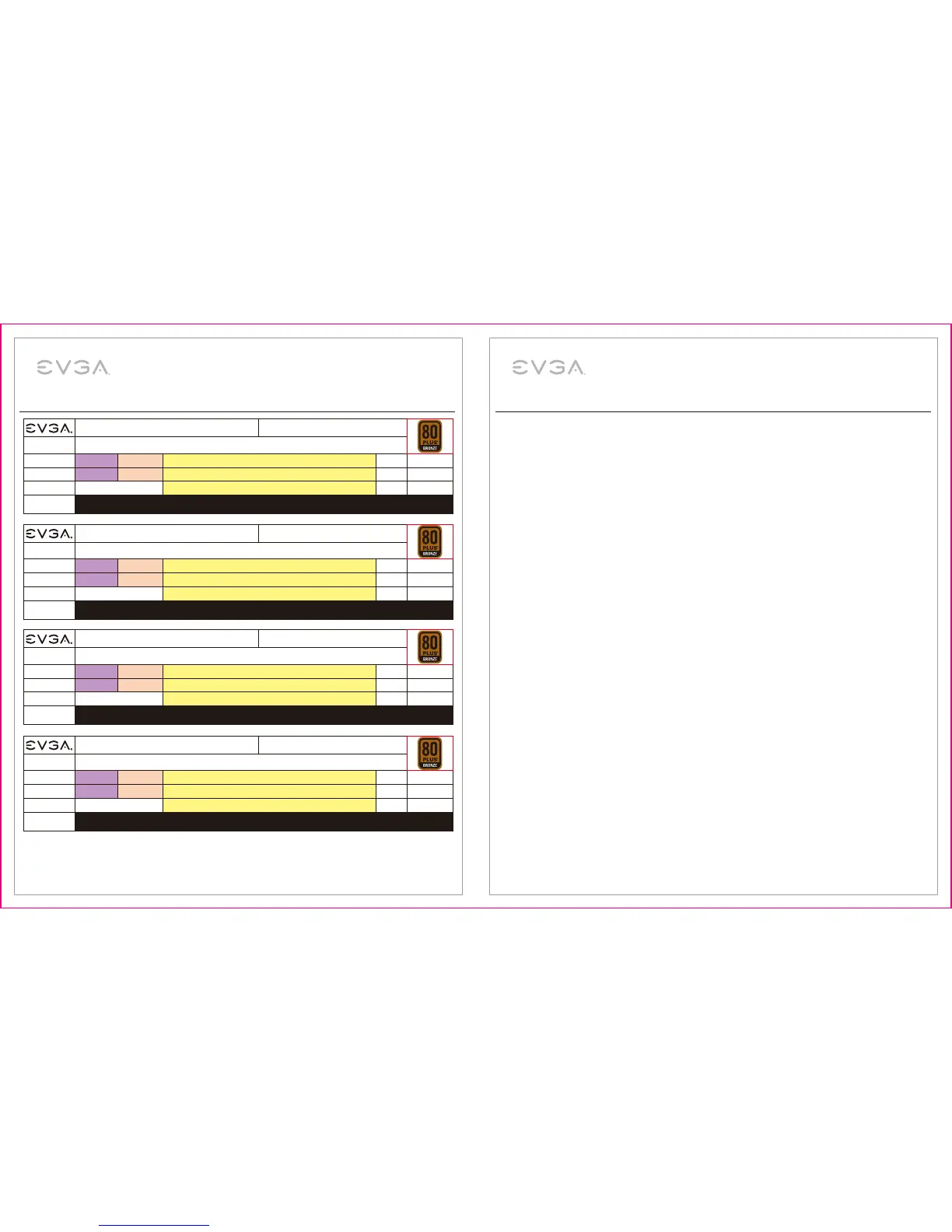 EVGA 450B / 500B / 600B / 700B especificaciones