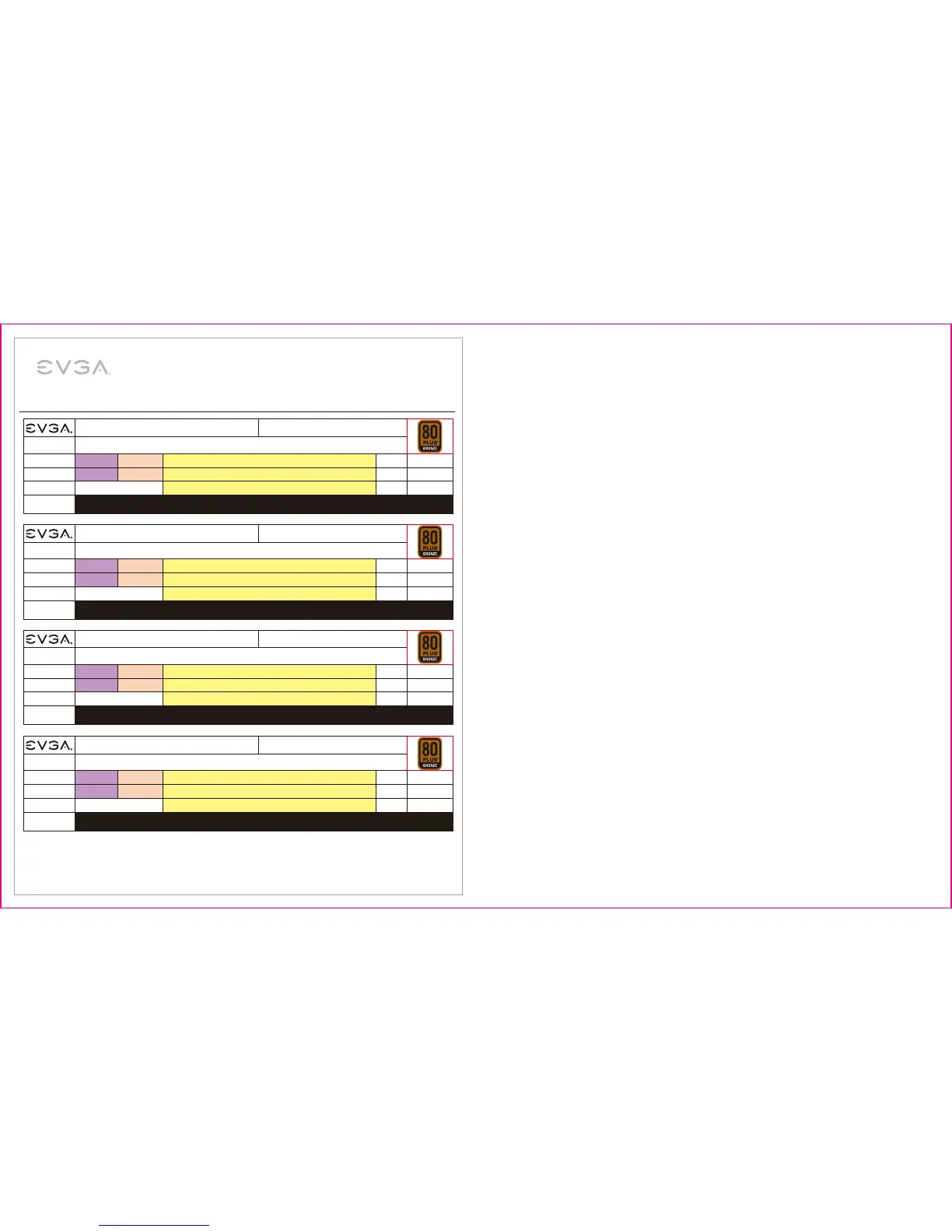 Specifiche tecniche EVGA 450B/500B/600B/700B