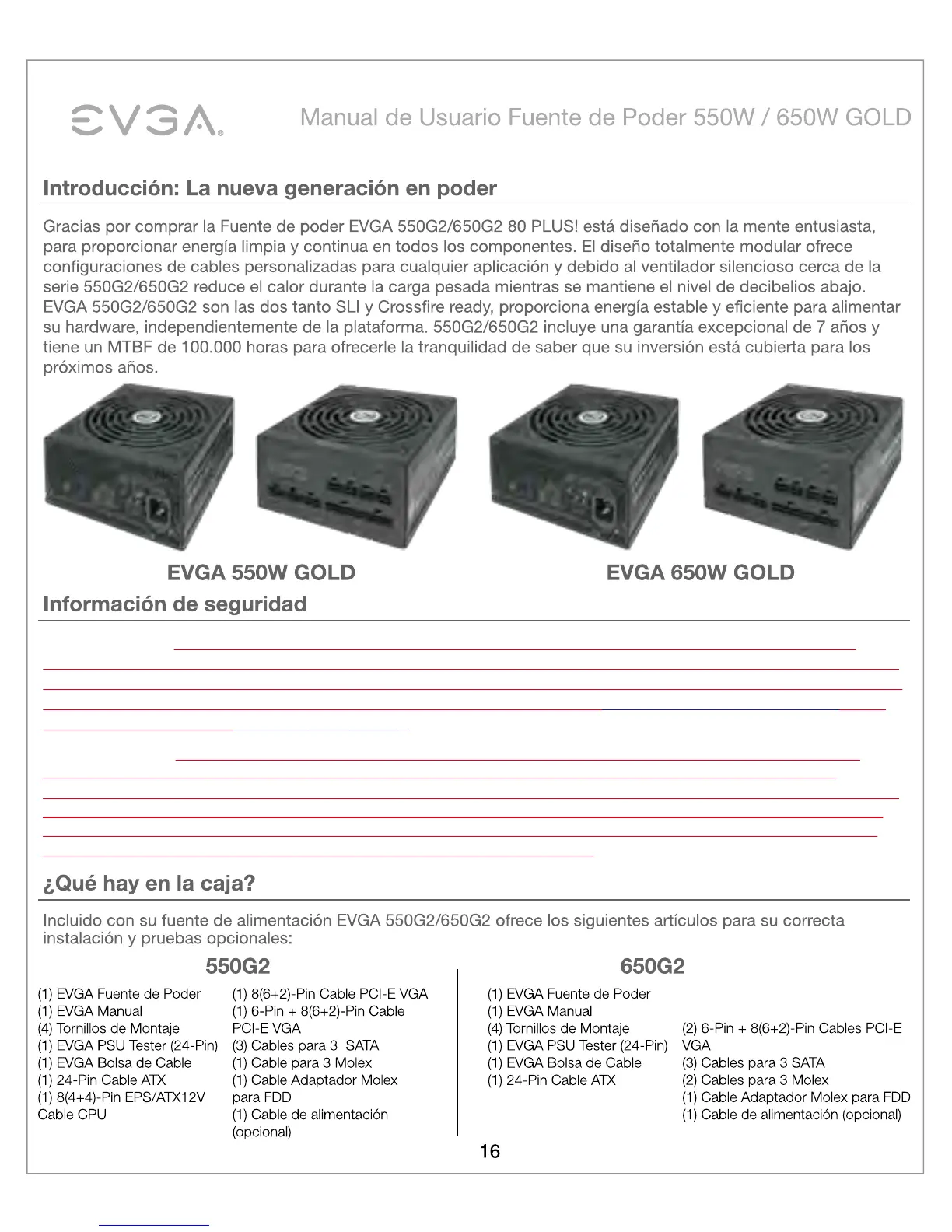 descarga eléctrica y anulará la garantía de los productos. EVGA no será responsable por cualquier resultado de mal uso,