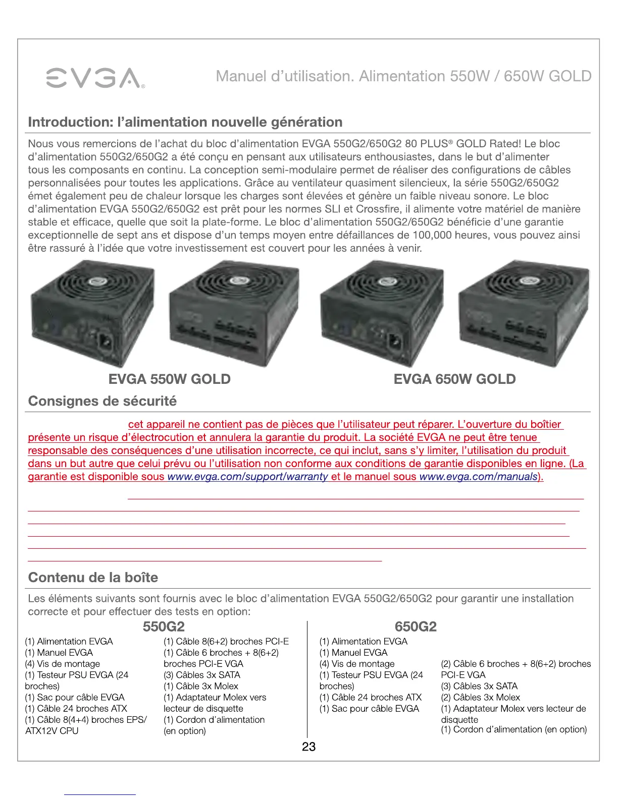 modèle d’alimentation faite PAR EVGA. EVGA ne sera pas responsable des dommages causés à votre alimentation dans