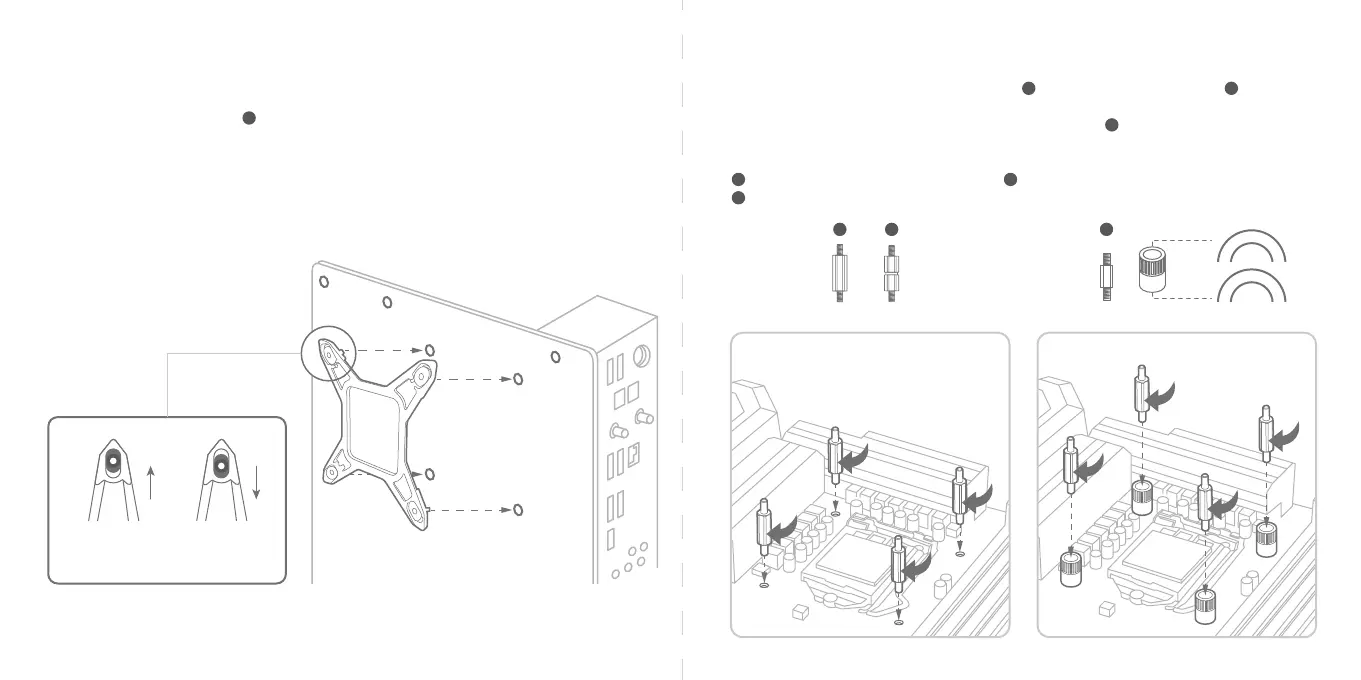 Install the mounting backplate part on the back of the motherboard if you are using an Intel LGA 17XX,