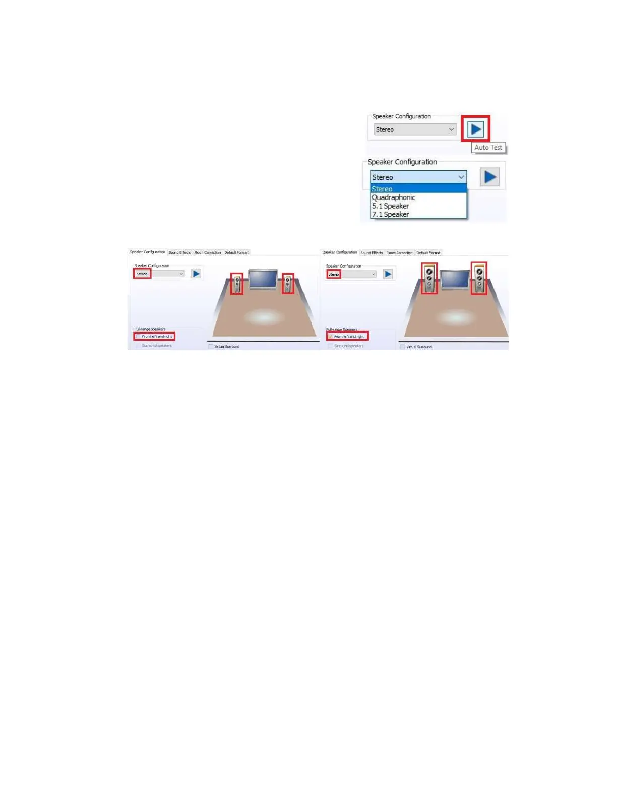 In the lower left, there is a pair of checkboxes labeled under “Full-Range Speakers.”
