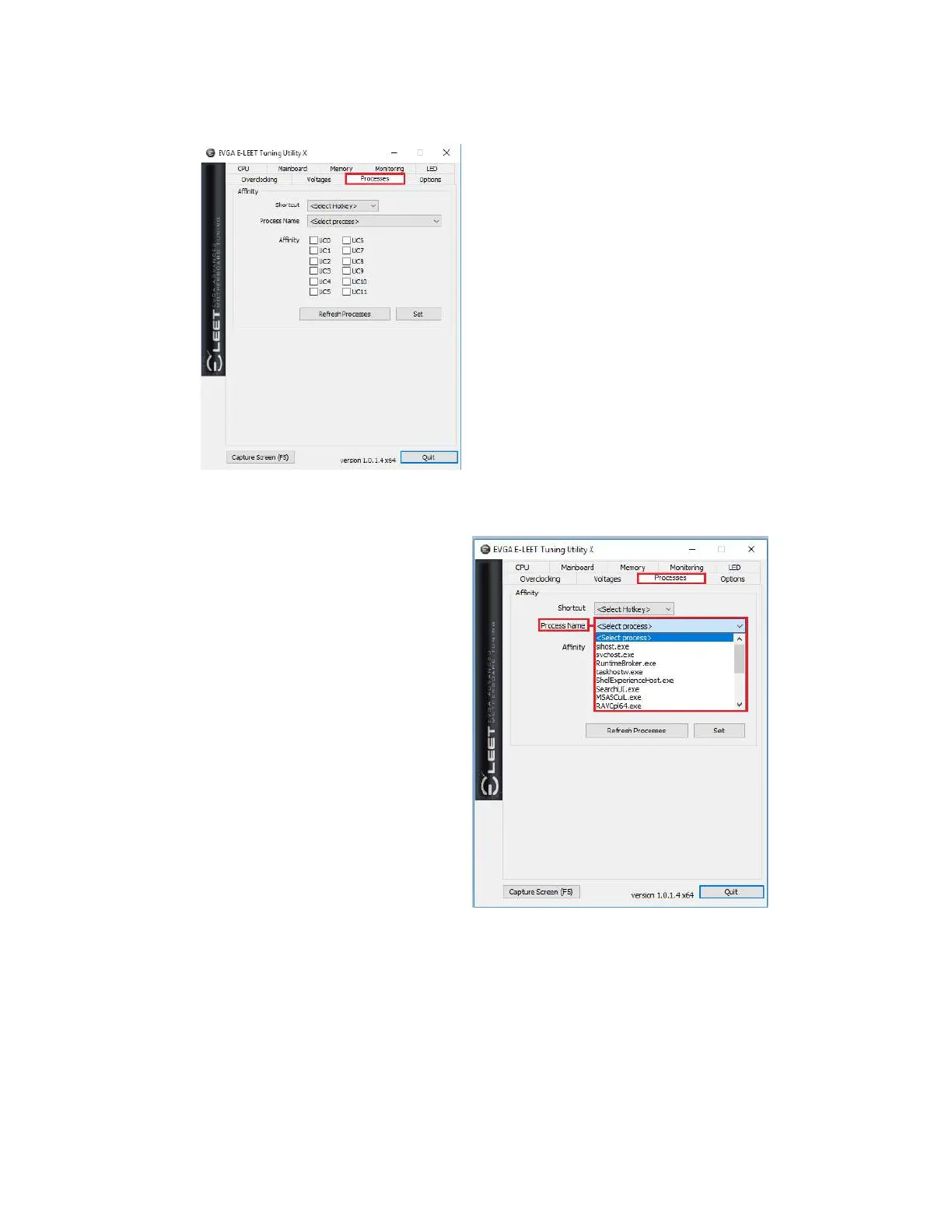 To set affinity, click on the pulldown button next to “Process Name.” Select the
