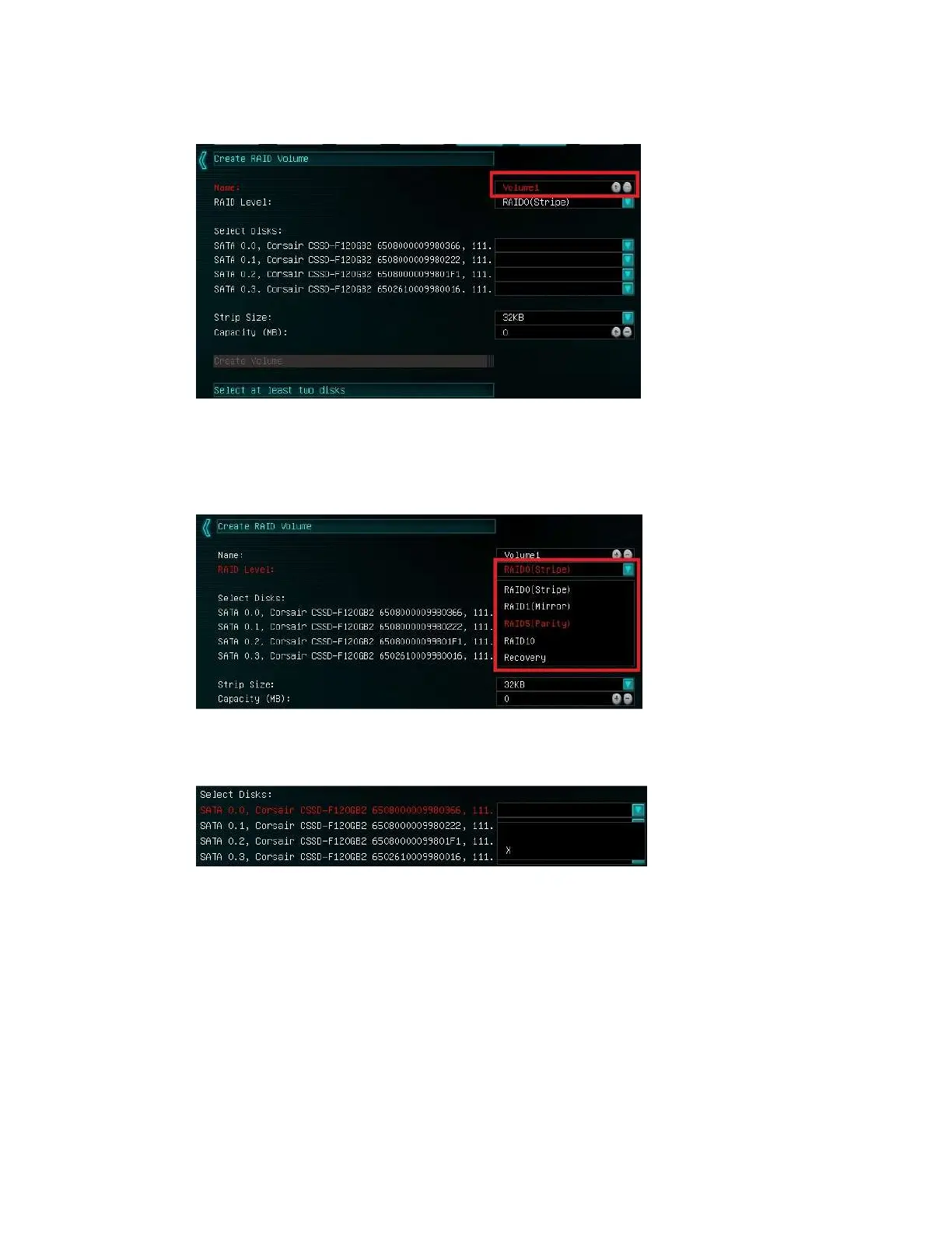 down arrow to select the RAID level and pressing Enter again. Please see the top half