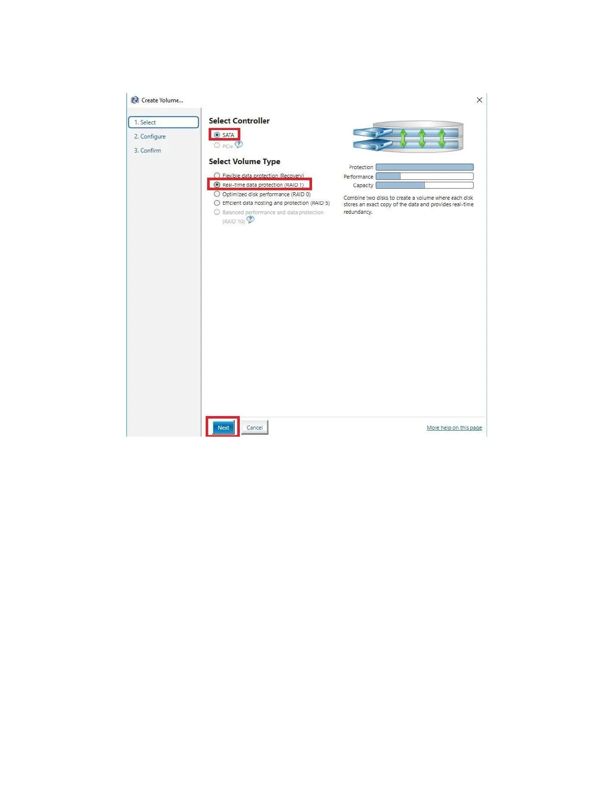 protection (RAID1).” Then, click Next at the bottom of the window.