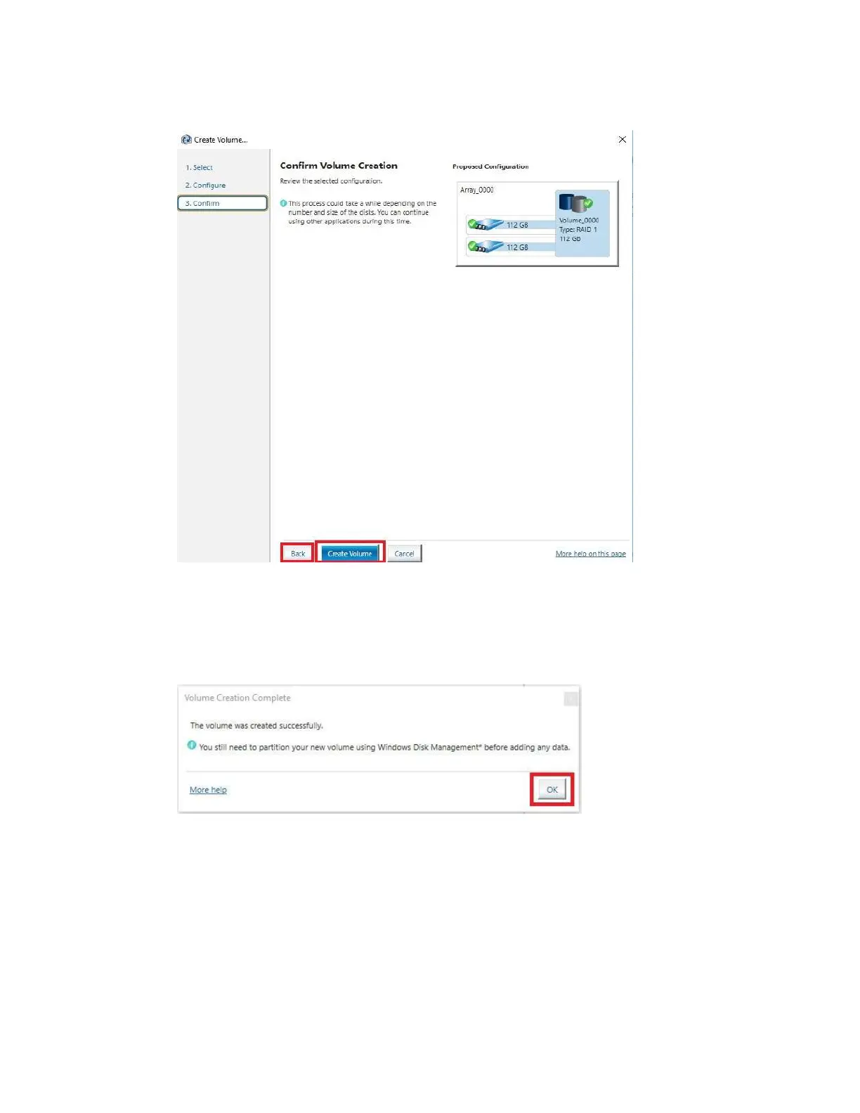see the message below. The array is now ready to be partitioned, formatted, and used.