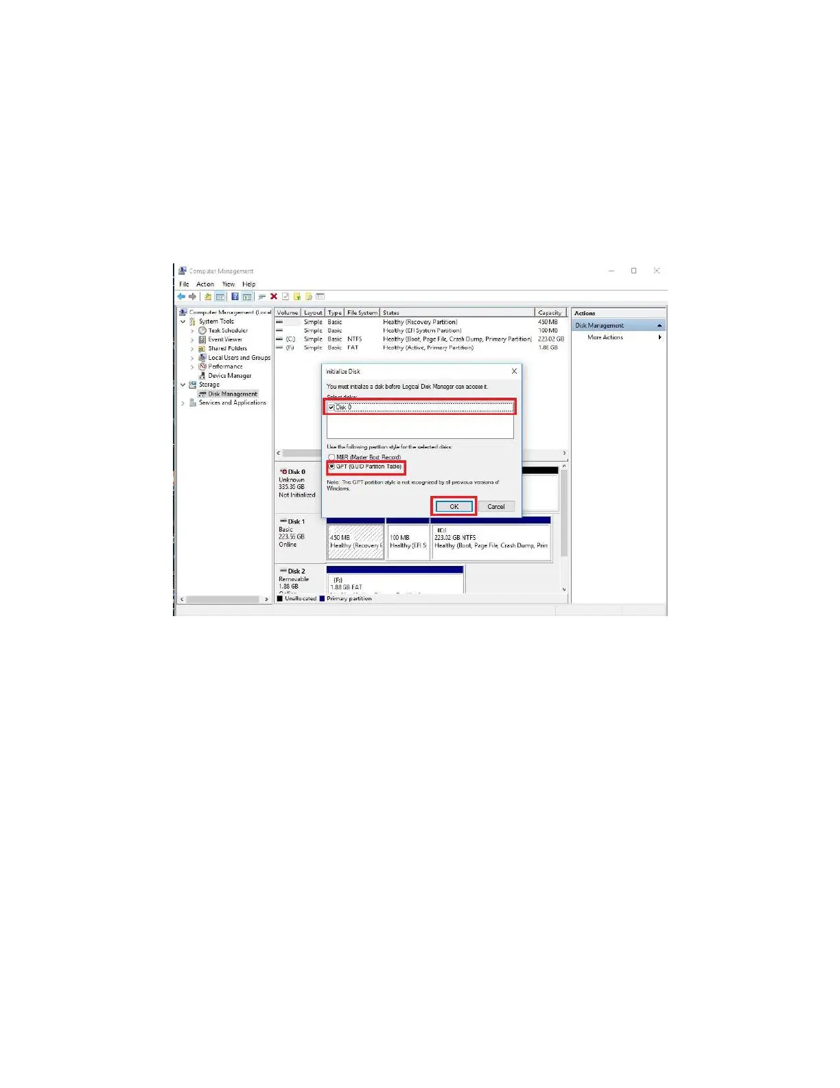 ter “Disk Management” loads, you’ll see a pop-up to Initialize Disk if you’ve added a
