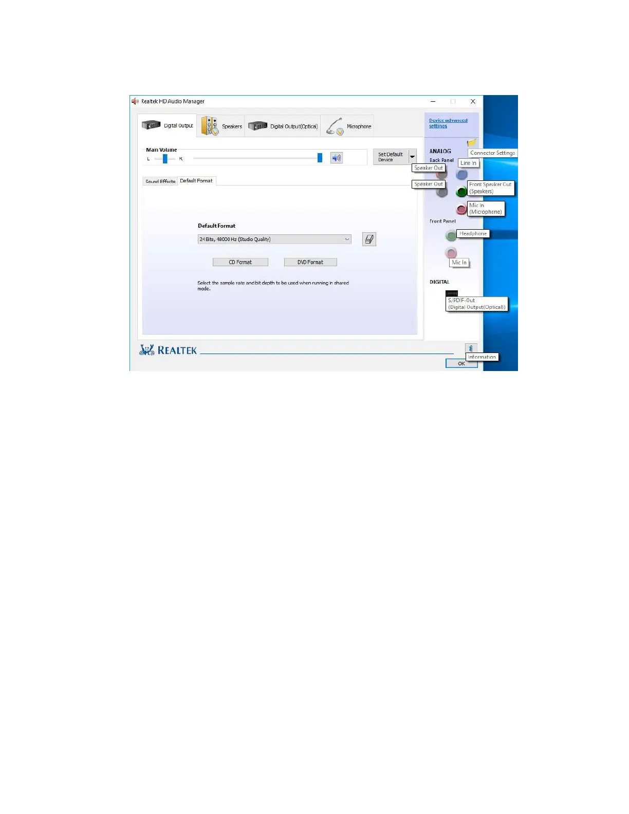 not currently connected; conversely, “Front Speaker Out (Speakers)” and “Mic In