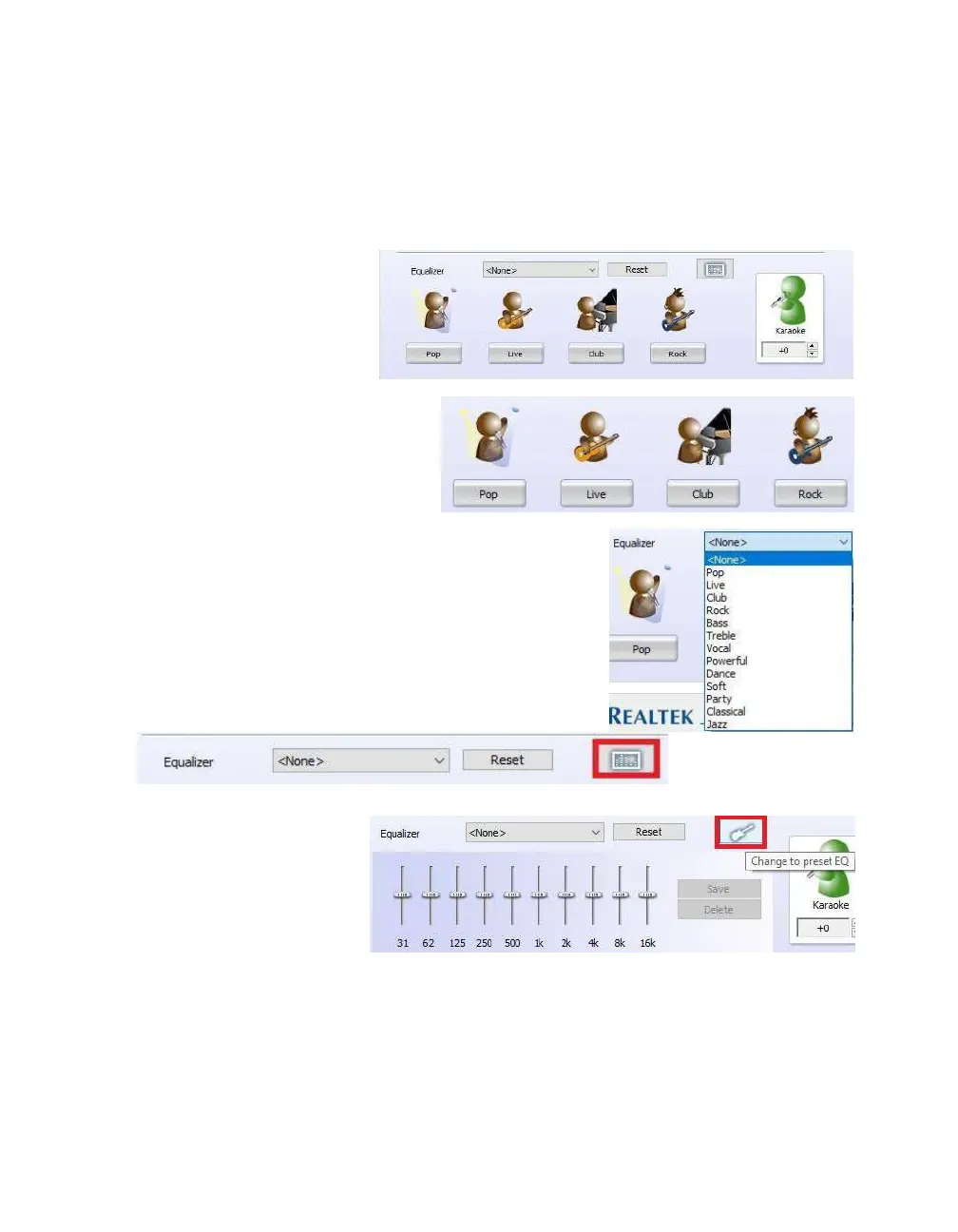 If you prefer to set your equalizer values manually, click