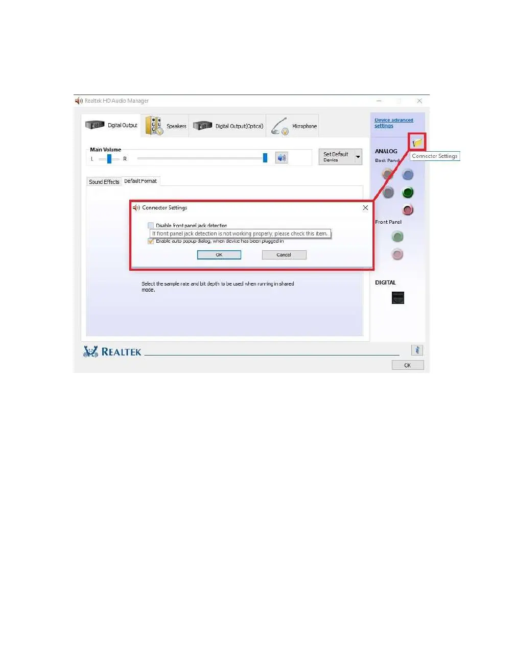 cases where the Realtek Manager refuses to acknowledge speakers plugged into the rear