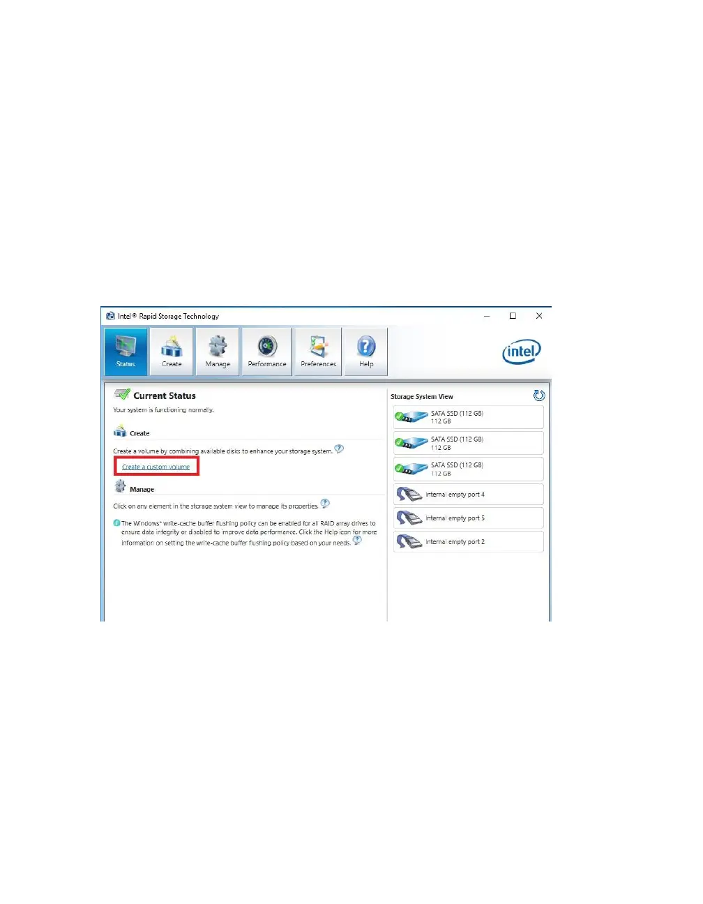 This guide will illustrate how to create a RAID1 array using the IRST. Using the screen