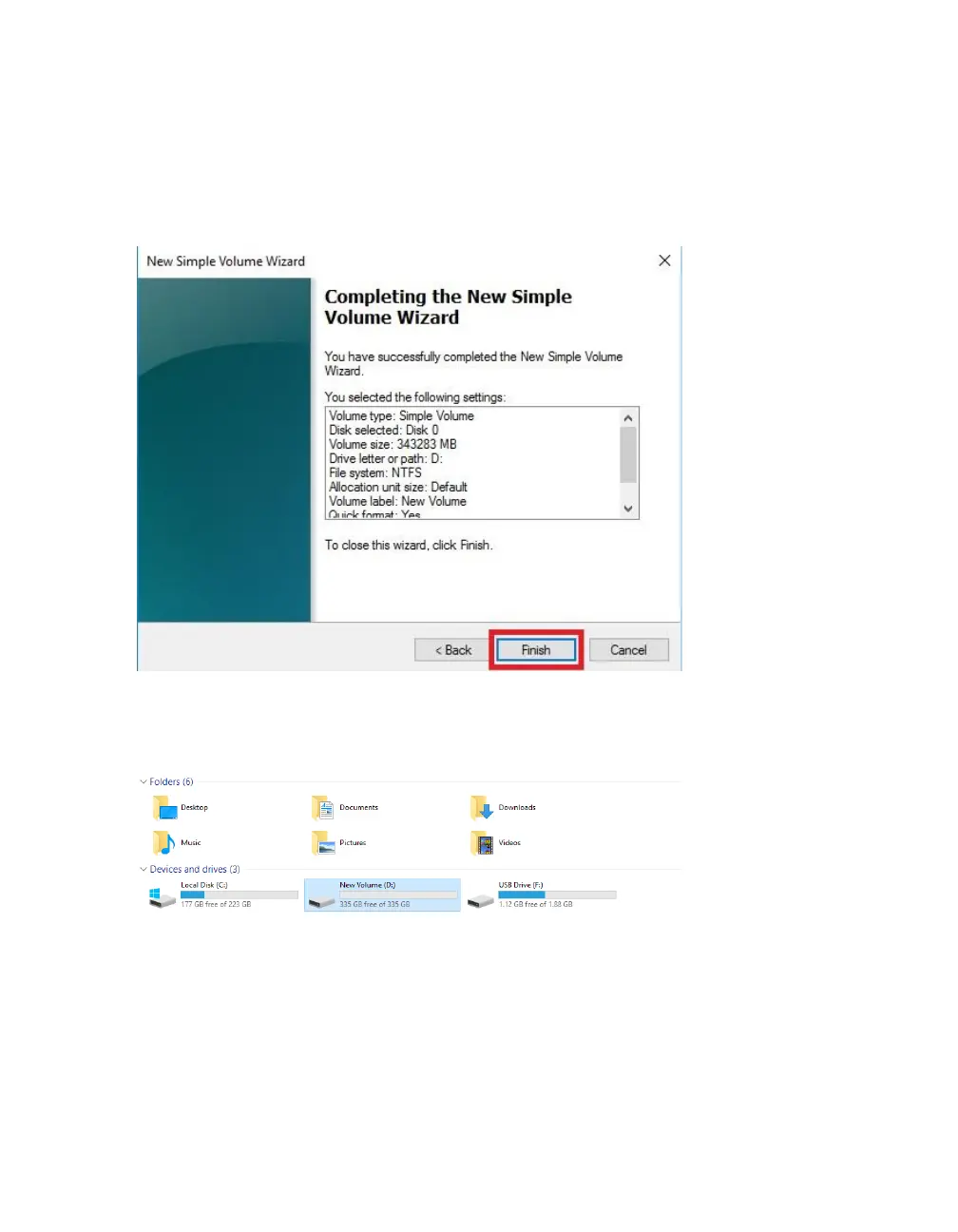 summary of the process, then click “Finish.” The drive is now usable.