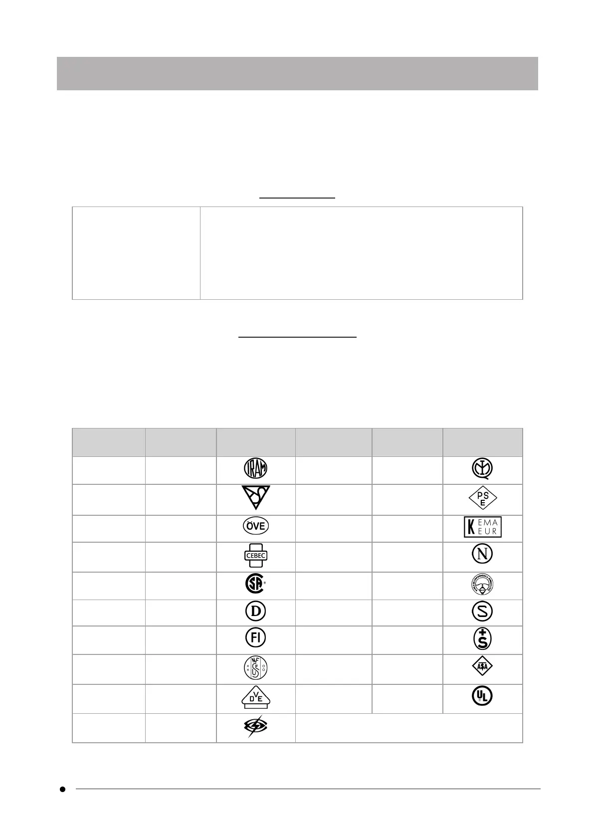 A power supply cord should be certified by one of the agencies listed in Table 1 , or comprised of cordage
