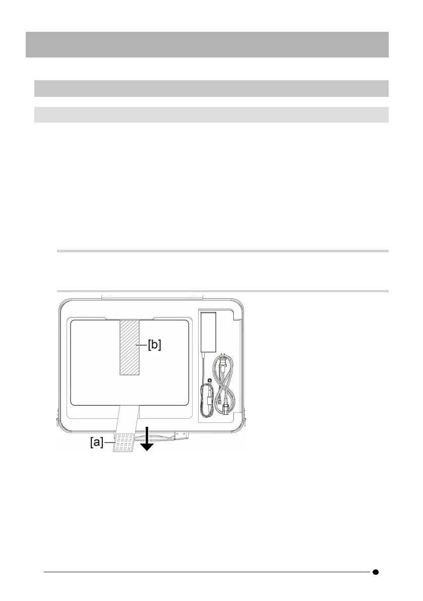 Store the tablet as shown in the diagram below. Pull the belt protruding from